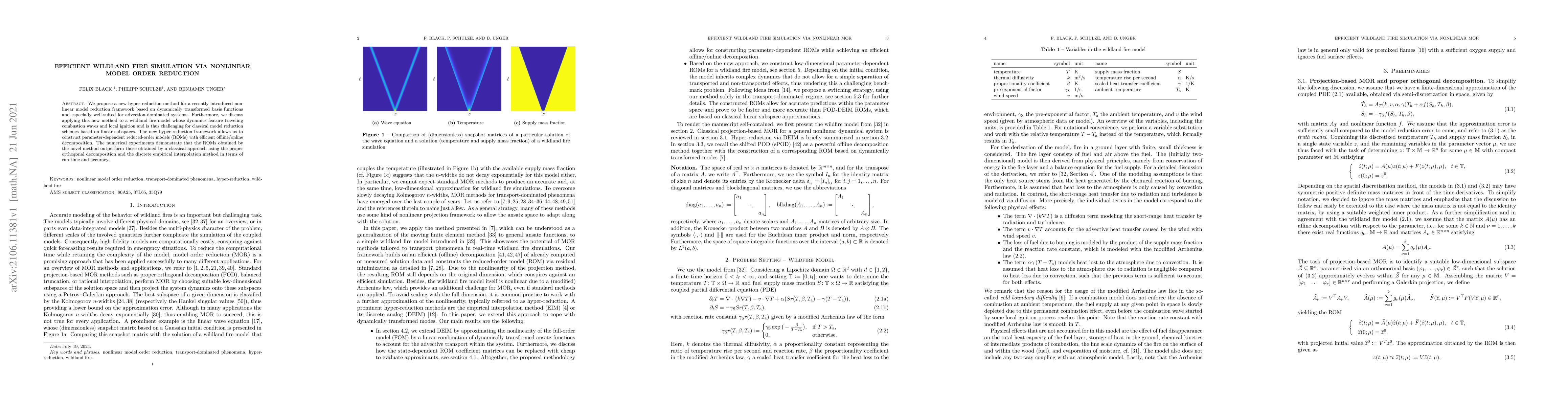 This paper introduces a new hyper-reduction method for nonlinear model reduction, specifically tailored for advection-dominated systems like wildland fire models. The proposed method constructs efficient reduced-order models that outperform traditional methods in terms of both runtime and accuracy.
