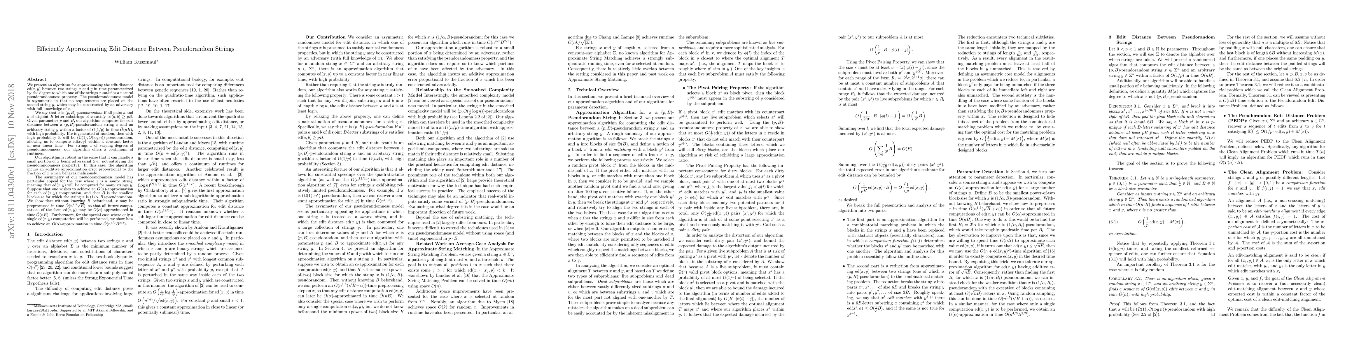 This paper presents an algorithm to efficiently approximate edit distance between two strings, one of which is pseudorandom, in time proportional to the degree of randomness and with a small approximation error.