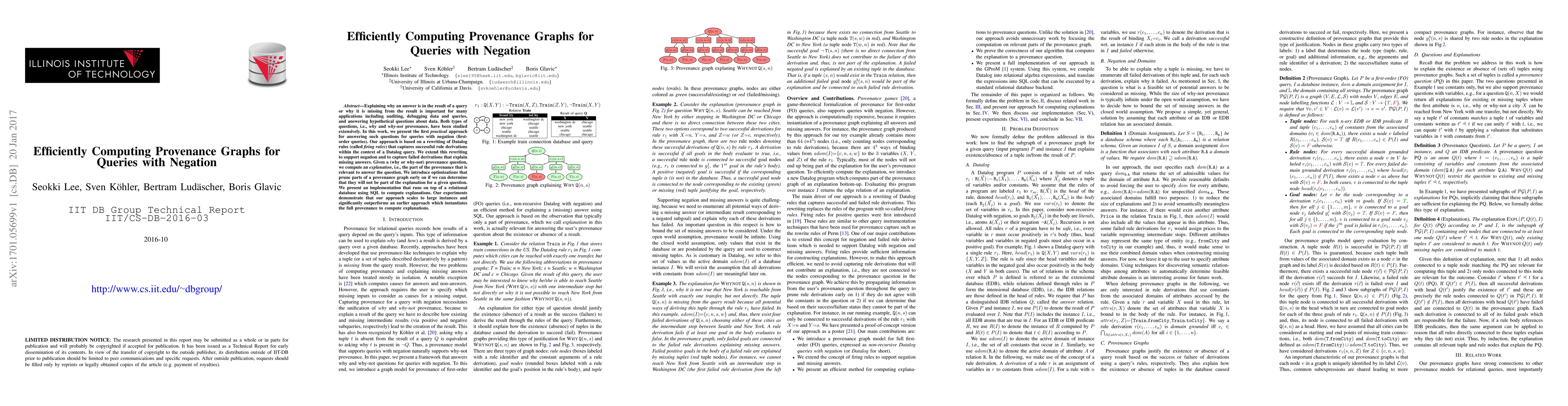 This paper presents a practical method for computing provenance graphs to explain query results and missing answers for queries with negation, using optimized rewriting of Datalog rules. The approach efficiently prunes irrelevant parts of the provenance graph, significantly outperforming previous methods.
