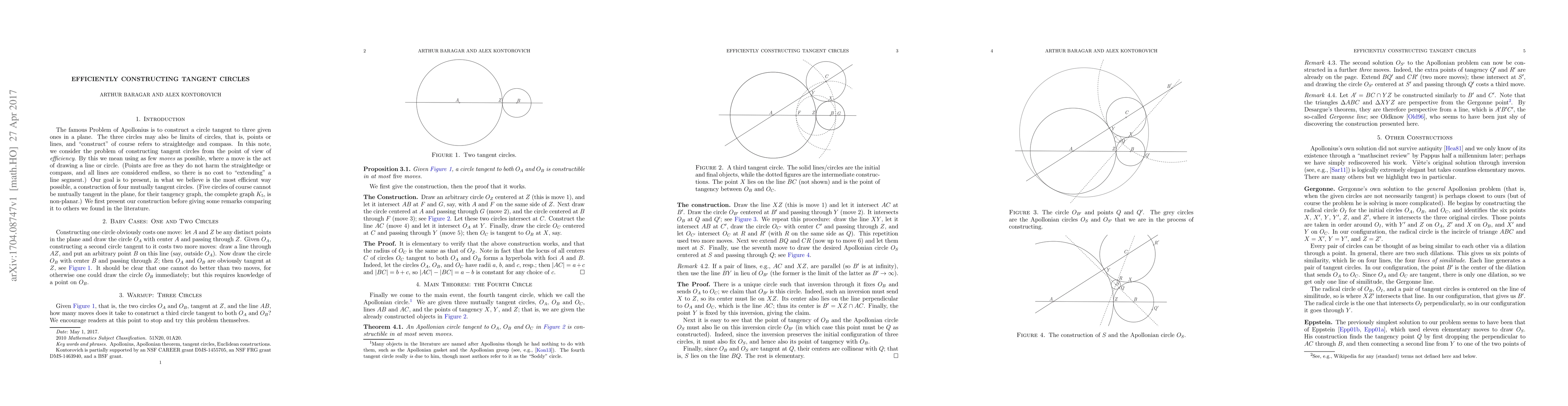 Summary: This paper presents an efficient method for constructing four mutually tangent circles, aiming to optimize the construction process. The focus is on achieving the configuration with minimal computational steps and complexity.