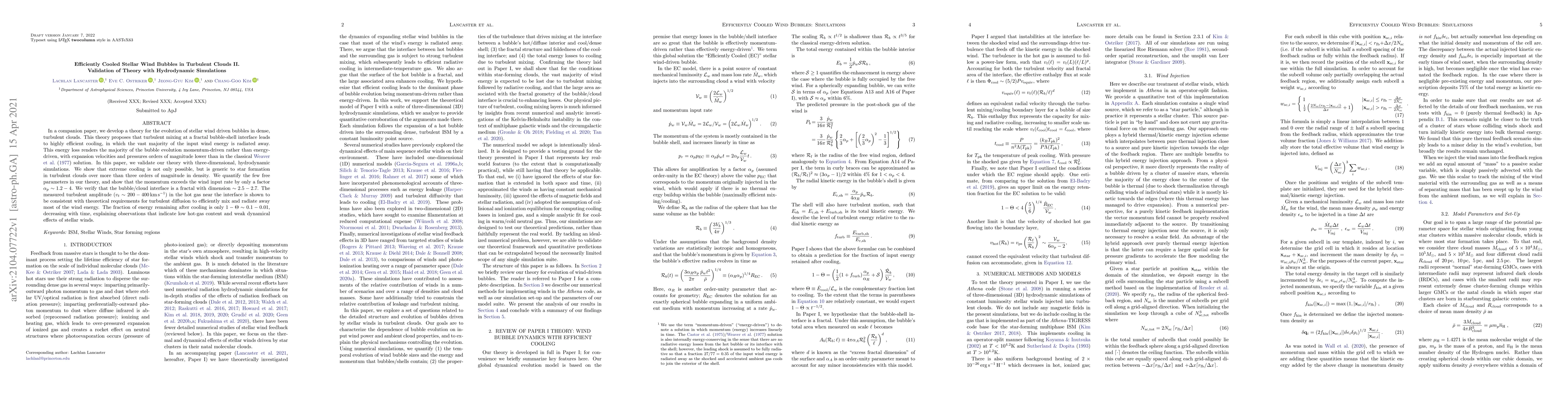 In a companion paper, we develop a theory for the evolution of stellar wind driven bubbles in dense, turbulent clouds. This theory proposes that turbulent mixing at a fractal bubble-shell interface leads to highly efficient cooling, in which the vast majority of the input wind energy is radiated away. This energy loss renders the majority of the bubble evolution momentum-driven rather than energy-driven, with expansion velocities and pressures orders of magnitude lower than in the classical Weaver77 solution. In this paper, we validate our theory with three-dimensional, hydrodynamic simulations. We show that extreme cooling is not only possible, but is generic to star formation in turbulent clouds over more than three orders of magnitude in density. We quantify the few free parameters in our theory, and show that the momentum exceeds the wind input rate by only a factor ~ 1.2-4. We verify that the bubble/cloud interface is a fractal with dimension ~ 2.5-2.7. The measured turbulent amplitude (v_t ~ 200-400 km/s) in the hot gas near the interface is shown to be consistent with theoretical requirements for turbulent diffusion to efficiently mix and radiate away most of the wind energy. The fraction of energy remaining after cooling is only 1-\Theta ~ 0.1-0.01, decreasing with time, explaining observations that indicate low hot-gas content and weak dynamical effects of stellar winds.