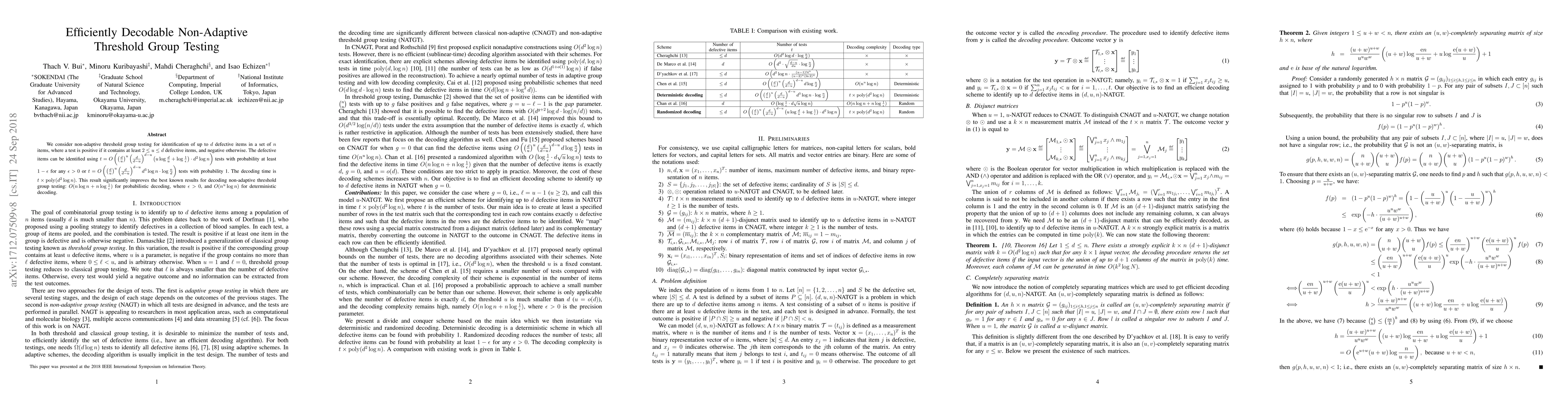 This paper presents a new method for efficiently decoding non-adaptive threshold group testing to identify up to $d$ defective items among $n$ items, requiring significantly fewer tests compared to previous methods. The proposed approach achieves optimal test complexity and polynomial decoding time.