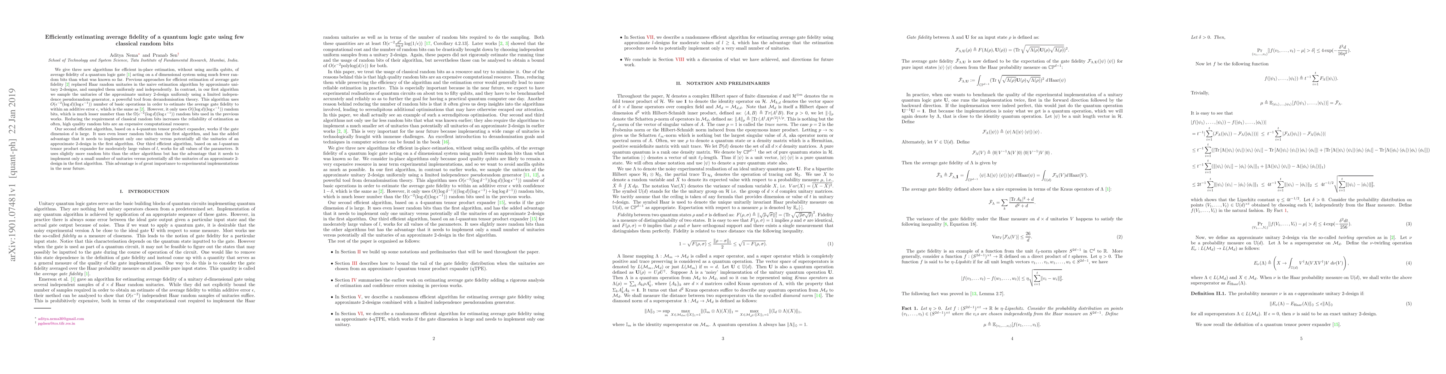 We give three new algorithms for efficient in-place estimation, without using ancilla qubits, of average fidelity of a quantum logic gate acting on a d-dimensional system using much fewer random bits than what was known so far. Previous approaches for efficient estimation of average gate fidelity replaced Haar random unitaries in the naive estimation algorithm by approximate unitary 2-designs, and sampled them uniformly and independently. In contrast, in our first algorithm we sample the unitaries of the approximate unitary 2-design uniformly using a limited independence pseudorandom generator, a powerful tool from derandomisation theory. This algorithm uses the same number of basic operations as previous efficient algorithms but much fewer number of random bits. Reducing the requirement of classical random bits increases the reliability of estimation as often, high quality random bits are an expensive computational resource. Our second efficient algorithm, based on a 4-quantum tensor product expander, works if the gate dimension d is large. It uses even lesser random bits than the first algorithm, and has the added advantage that it needs to implement only one unitary versus potentially all the unitaries of an approximate 2-design in the first algorithm. Our third efficient algorithm, based on an l-quantum tensor product expander for moderately large values of l, works for all values of the parameters. It uses slightly more random bits than the other algorithms but has the advantage that it needs to implement only a small number of unitaries versus potentially all the unitaries of an approximate 2-design in the first algorithm. This advantage is of great importance to experimental implementations in the near future.