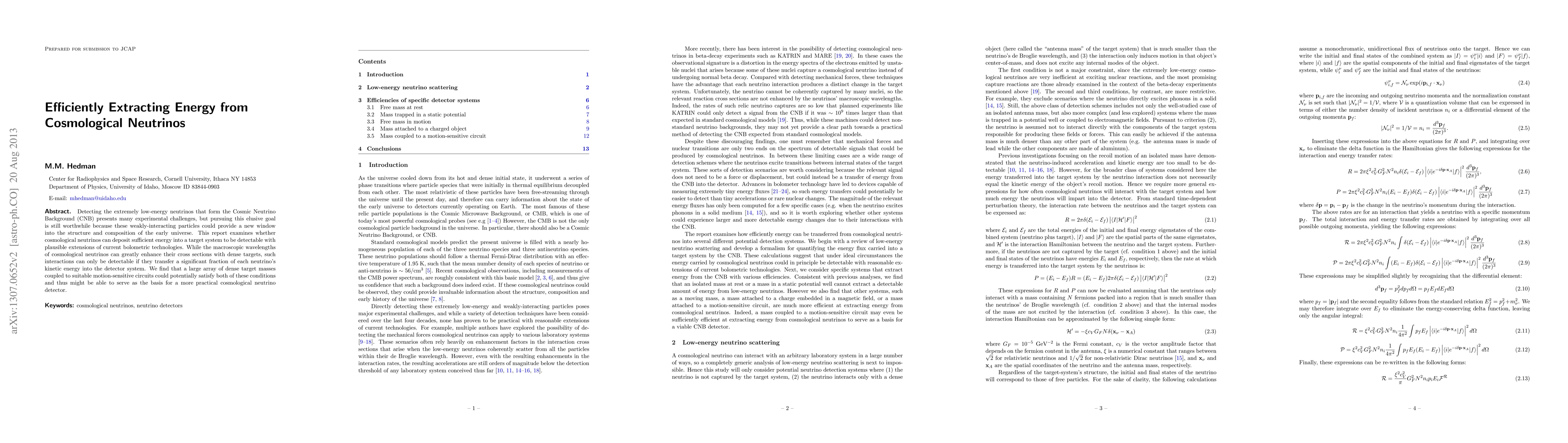 Detecting the extremely low-energy neutrinos that form the Cosmic Neutrino Background (CNB) presents many experimental challenges, but pursuing this elusive goal is still worthwhile because these weakly-interacting particles could provide a new window into the structure and composition of the early universe. This report examines whether cosmological neutrinos can deposit sufficient energy into a target system to be detectable with plausible extensions of current bolometric technologies. While the macroscopic wavelengths of cosmological neutrinos can greatly enhance their cross sections with dense targets, such interactions can only be detectable if they transfer a significant fraction of each neutrino's kinetic energy into the detector system. We find that a large array of dense target masses coupled to suitable motion-sensitive circuits could potentially satisfy both of these conditions and thus might be able to serve as the basis for a more practical cosmological neutrino detector.