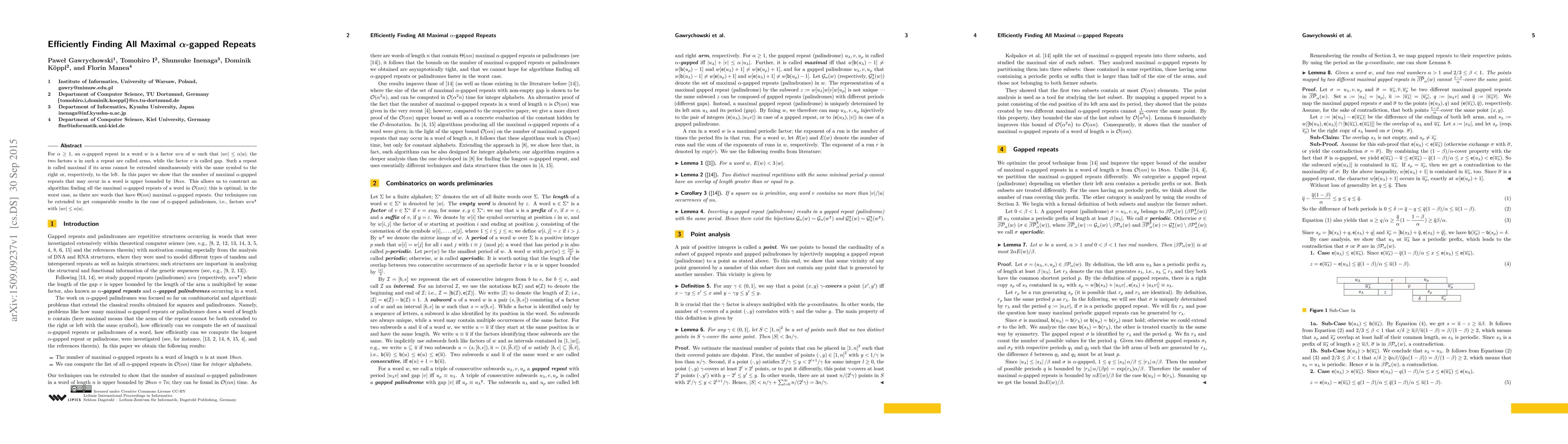 This paper presents an efficient algorithm to find all maximal $\alpha$-gapped repeats in a word, with an upper bound of $18\alpha n$ such repeats, and achieves this in $O(\alpha n)$ time, which is optimal. The method also extends to finding $\alpha$-gapped palindromes.