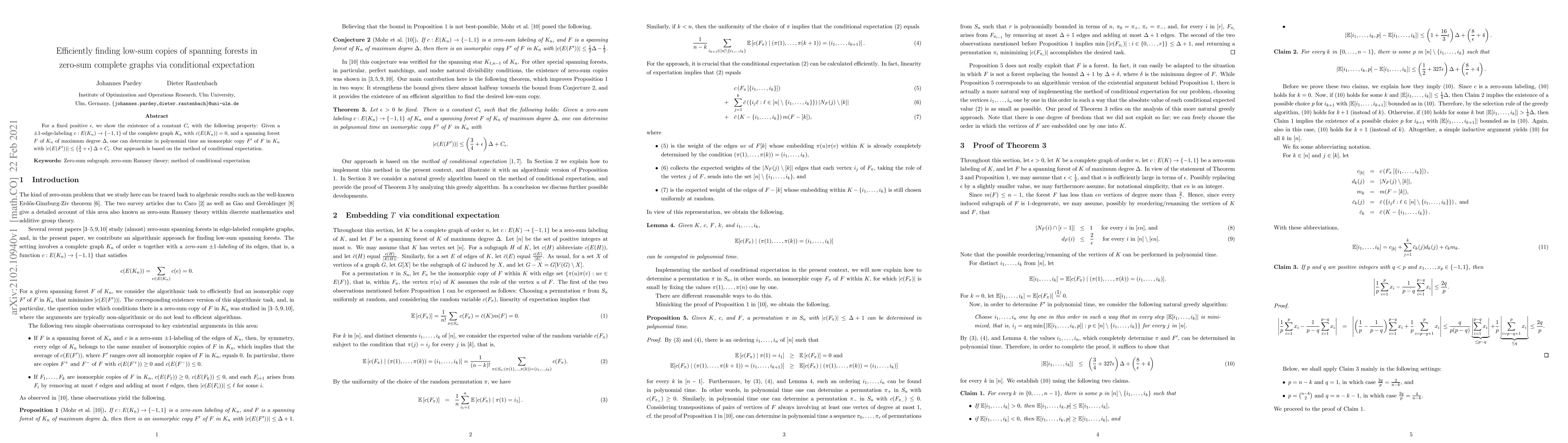 For a fixed positive $\epsilon$, we show the existence of a constant $C_\epsilon$ with the following property: Given a $\pm1$-edge-labeling $c:E(K_n)\to \{ -1,1\}$ of the complete graph $K_n$ with $c(E(K_n))=0$, and a spanning forest $F$ of $K_n$ of maximum degree $\Delta$, one can determine in polynomial time an isomorphic copy $F'$ of $F$ in $K_n$ with $|c(E(F'))|\leq \left(\frac{3}{4}+\epsilon\right)\Delta+C_\epsilon.$ Our approach is based on the method of conditional expectation.
