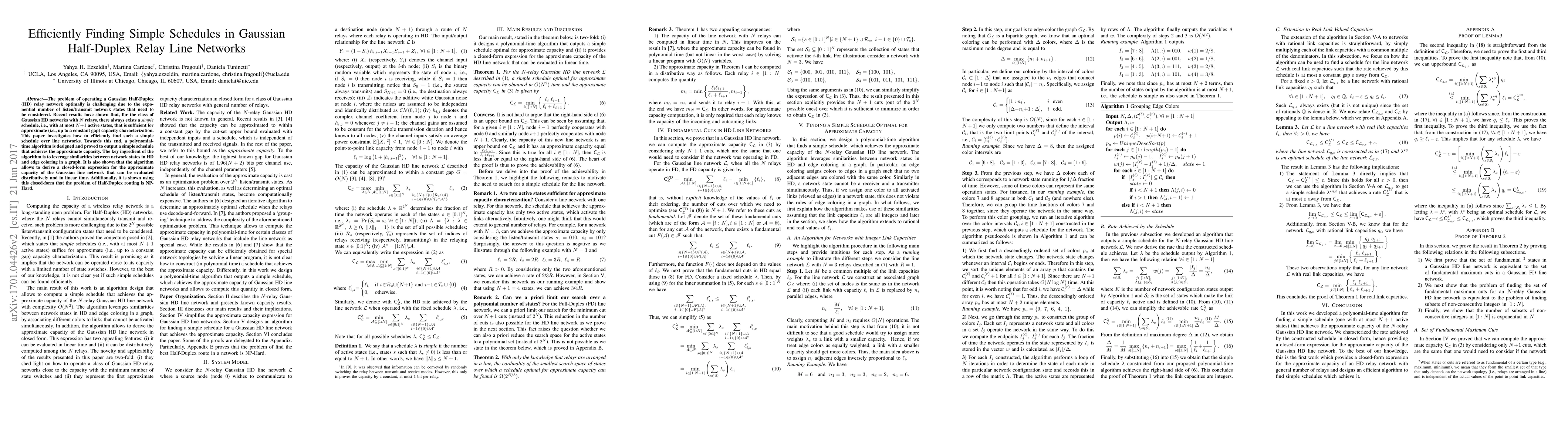 This paper presents a polynomial-time algorithm to efficiently find simple schedules for Gaussian Half-Duplex relay networks, leveraging similarities between network states and graph edge coloring. The algorithm also provides a closed-form expression for approximate capacity evaluation.
