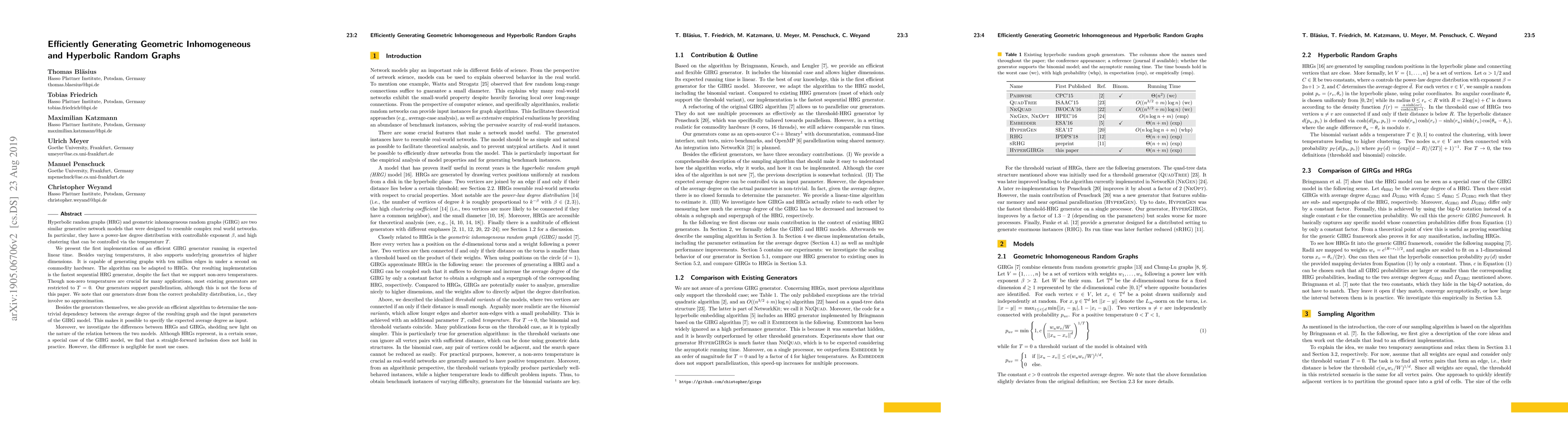 This paper presents an efficient linear-time generator for geometric inhomogeneous random graphs (GIRG) capable of producing graphs with ten million edges in under a second, supporting non-zero temperatures and higher-dimensional geometries. It also introduces an algorithm to determine the average degree based on input parameters, and explores the nuanced differences between GIRG and hyperbolic random graphs (HRG).