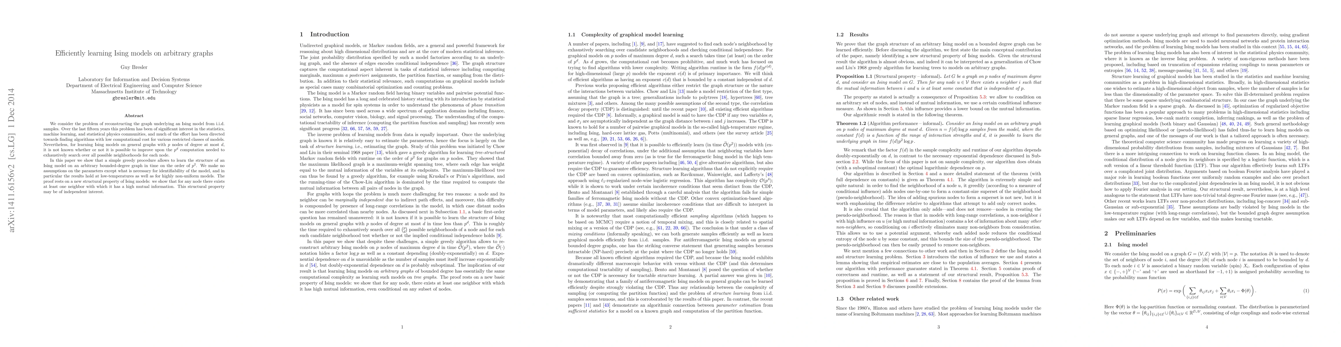 Researchers have developed a simple algorithm that can efficiently learn the structure of an Ising model on arbitrary graphs in time proportional to the square of the number of nodes, improving upon previously known bounds.