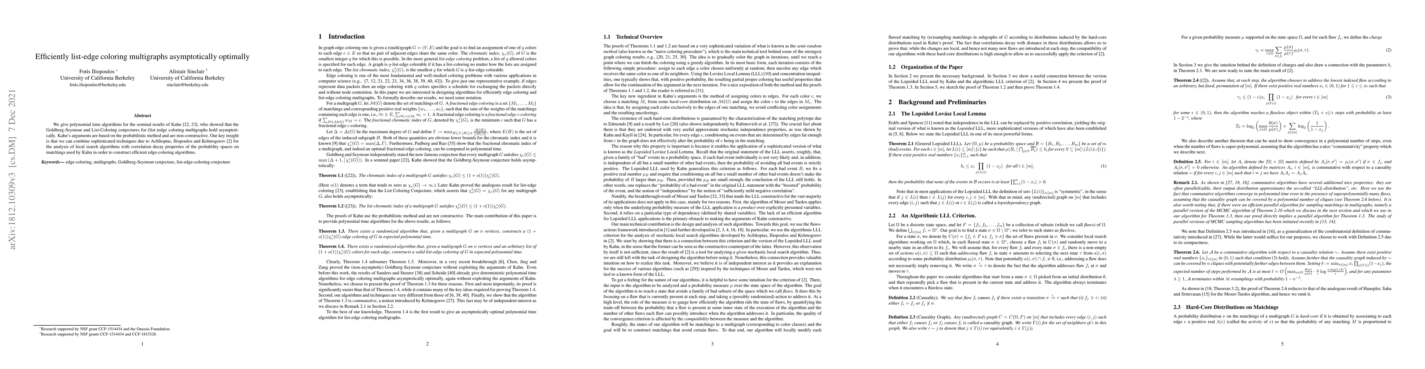 The paper introduces a novel application of the Lopsided Lovász Local Lemma to design constructive algorithms for edge coloring multigraphs, making Kahn's asymptotic results practical.