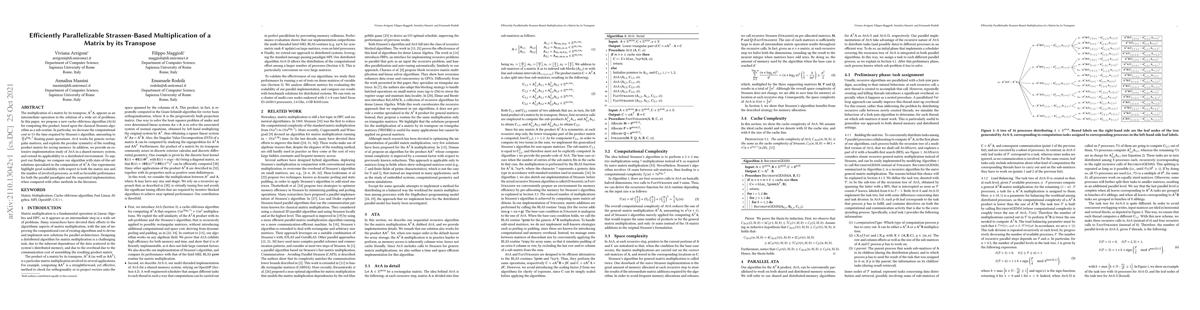 This paper proposes a cache-oblivious algorithm (ATA) for efficiently computing the product $A^T A$ using a modified Strassen algorithm, achieving $\frac{2}{3}$ of the computational cost of the original Strassen method. The algorithm scales well in both shared and distributed memory environments.