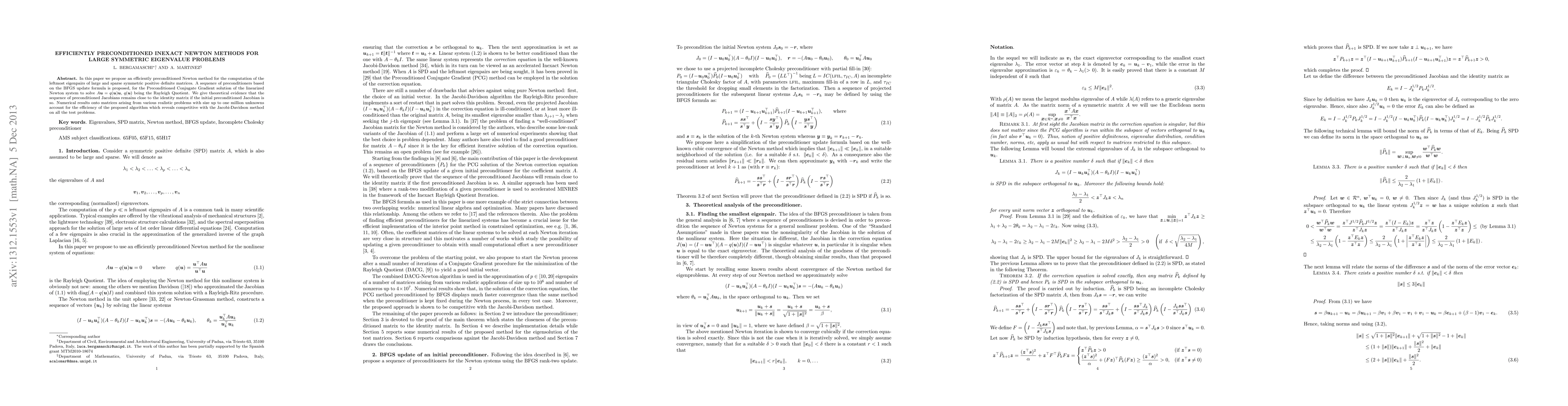 Researchers propose an efficient method for solving large symmetric positive definite eigenvalue problems using a preconditioned Newton method with a sequence of BFGS update formulas, showing competitive results with the Jacobi-Davidson method.