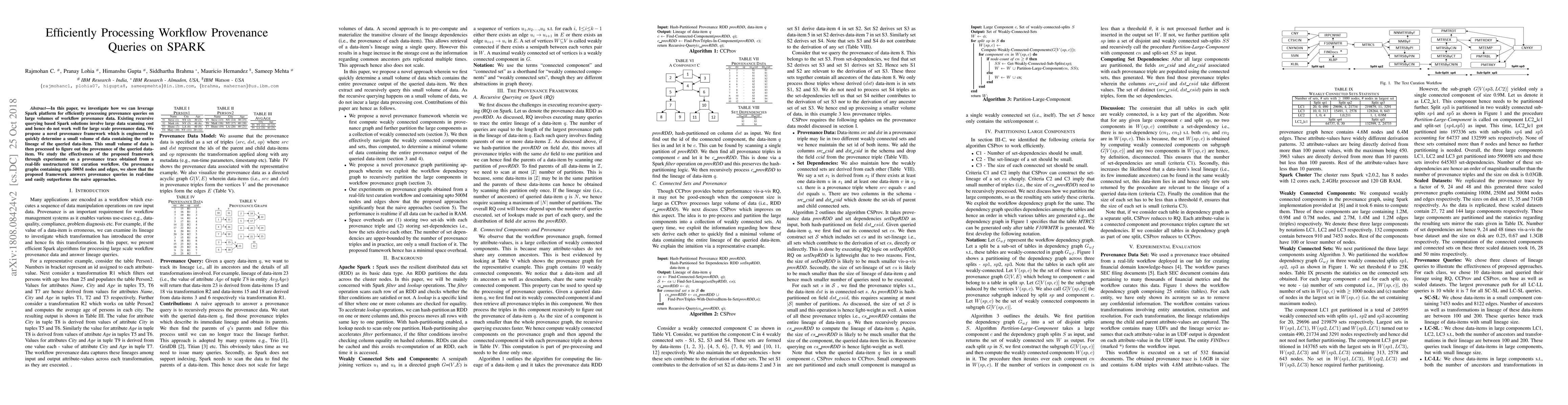 This paper proposes a novel framework leveraging Spark to efficiently process provenance queries on large workflow data by determining minimal data volumes containing queried attribute-value lineages. The framework computes weakly connected components and partitions large components into manageable sets, achieving real-time query responses and outperforming naive approaches.