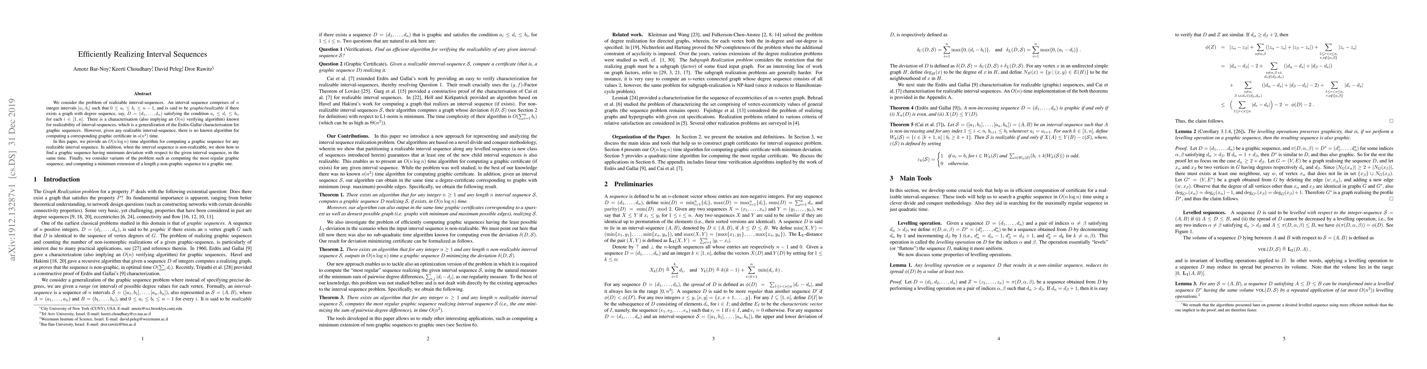 We consider the problem of realizable interval-sequences. An interval sequence comprises of $n$ integer intervals $[a_i,b_i]$ such that $0\leq a_i \leq b_i \leq n-1$, and is said to be graphic/realizable if there exists a graph with degree sequence, say, $D=(d_1,\ldots,d_n)$ satisfying the condition $a_i \leq d_i \leq b_i$, for each $i \in [1,n]$. There is a characterisation (also implying an $O(n)$ verifying algorithm) known for realizability of interval-sequences, which is a generalization of the Erdos-Gallai characterisation for graphic sequences. However, given any realizable interval-sequence, there is no known algorithm for computing a corresponding graphic certificate in $o(n^2)$ time. In this paper, we provide an $O(n \log n)$ time algorithm for computing a graphic sequence for any realizable interval sequence. In addition, when the interval sequence is non-realizable, we show how to find a graphic sequence having minimum deviation with respect to the given interval sequence, in the same time. Finally, we consider variants of the problem such as computing the most regular graphic sequence, and computing a minimum extension of a length $p$ non-graphic sequence to a graphic one.
