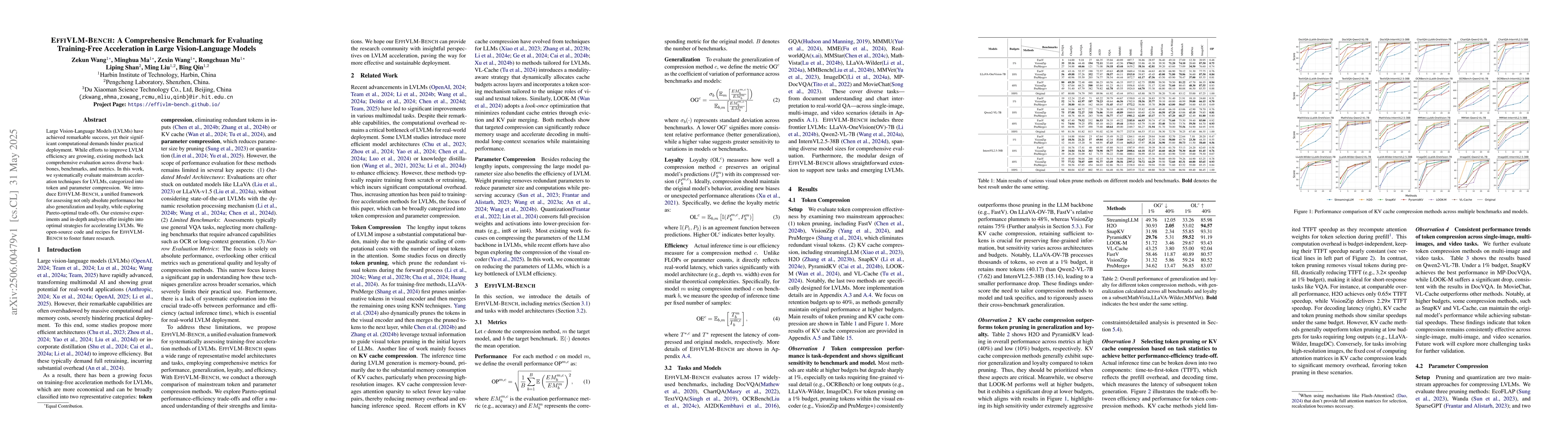 Researchers introduced EffiVLM-Bench to evaluate training-free acceleration in large vision-language models, highlighting optimal strategies for reducing computational demands while maintaining performance.