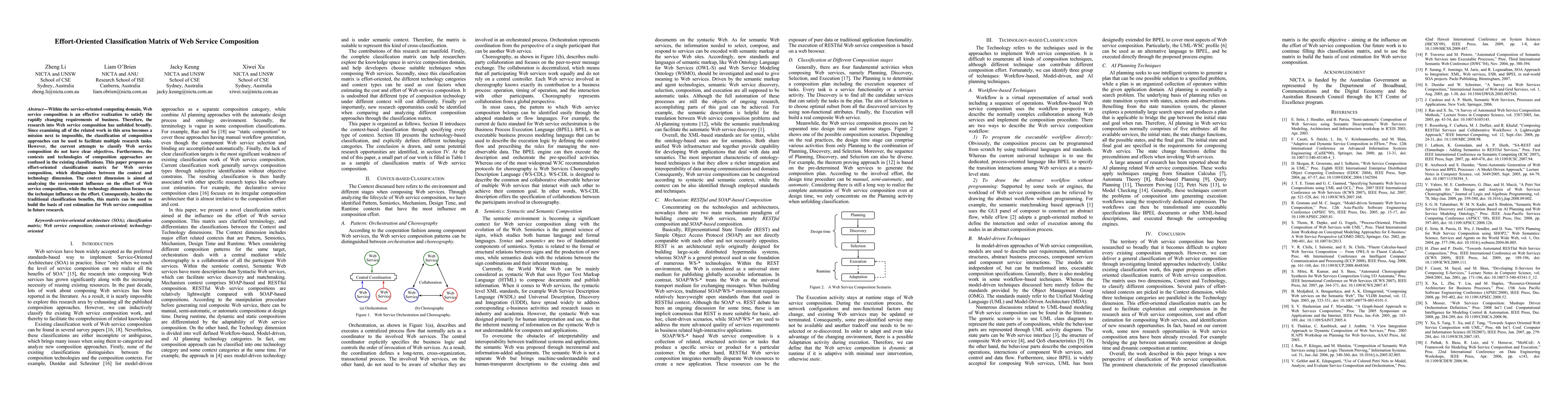 This paper proposes an effort-oriented classification matrix to categorize Web service composition approaches, distinguishing between environmental context and technological technique influences. This matrix aims to clarify existing confusions and provide a basis for future cost estimation in Web service composition.