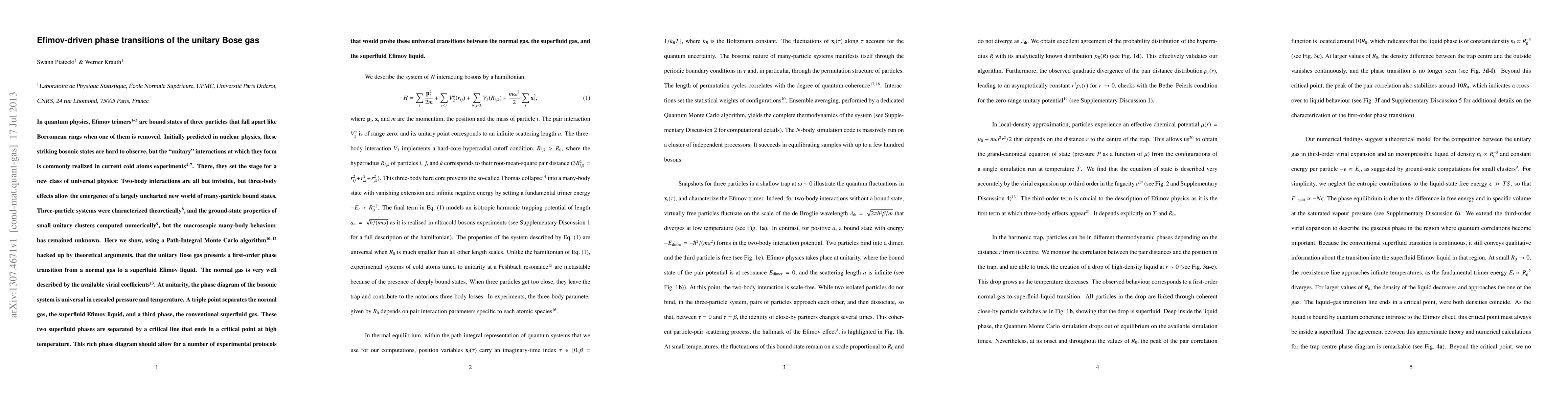 Researchers discovered a new phase transition in a unitary Bose gas, characterized by a first-order transition from a normal gas to a superfluid Efimov liquid, with a universal phase diagram that can be probed experimentally.