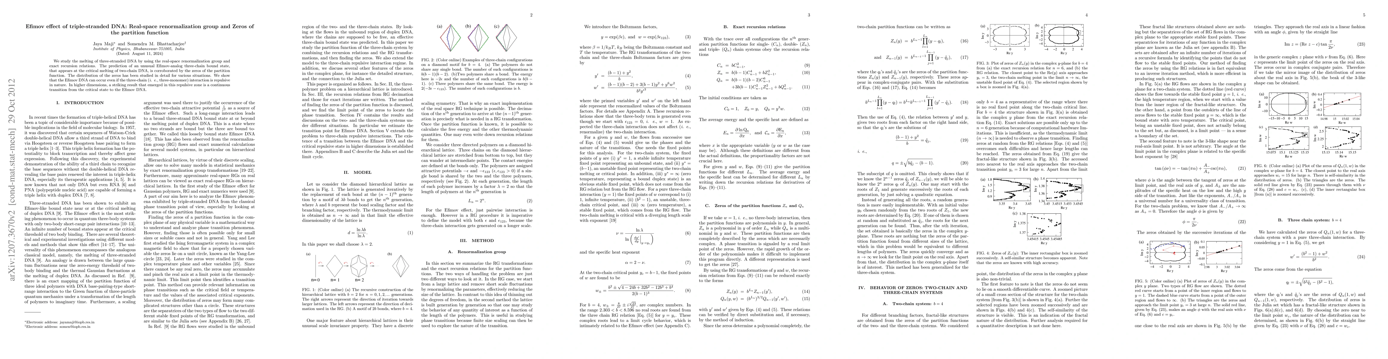 Researchers study the melting of three-stranded DNA using renormalization group and exact recursion relations, finding that an unusual Efimov-analog bound state can occur even with repulsive interactions.