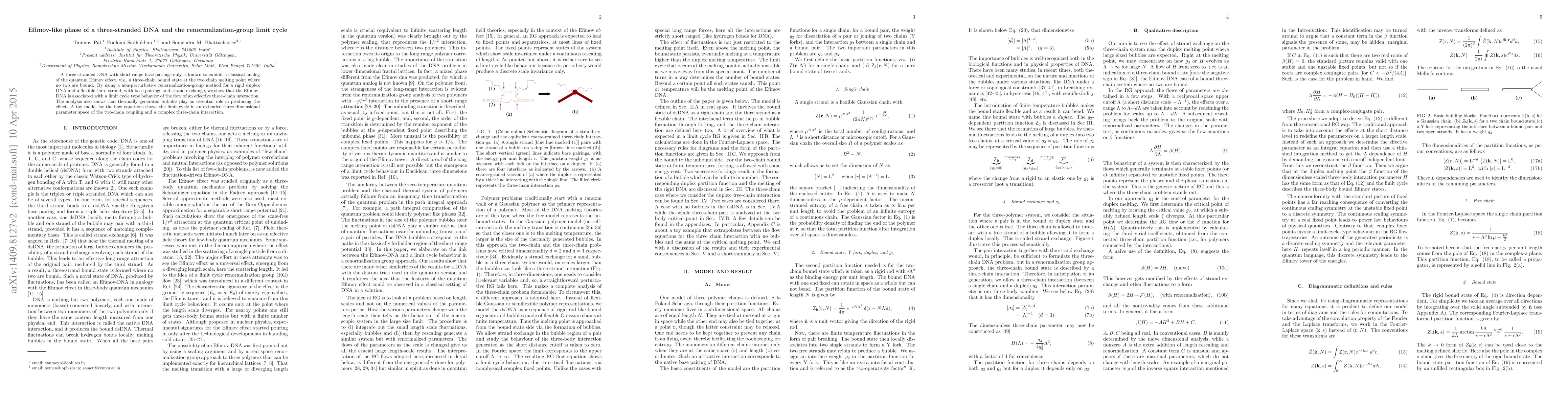 A three-stranded DNA model exhibits a quantum Efimov effect-like behavior with a limit cycle in its interaction flow, driven by thermally generated bubbles.