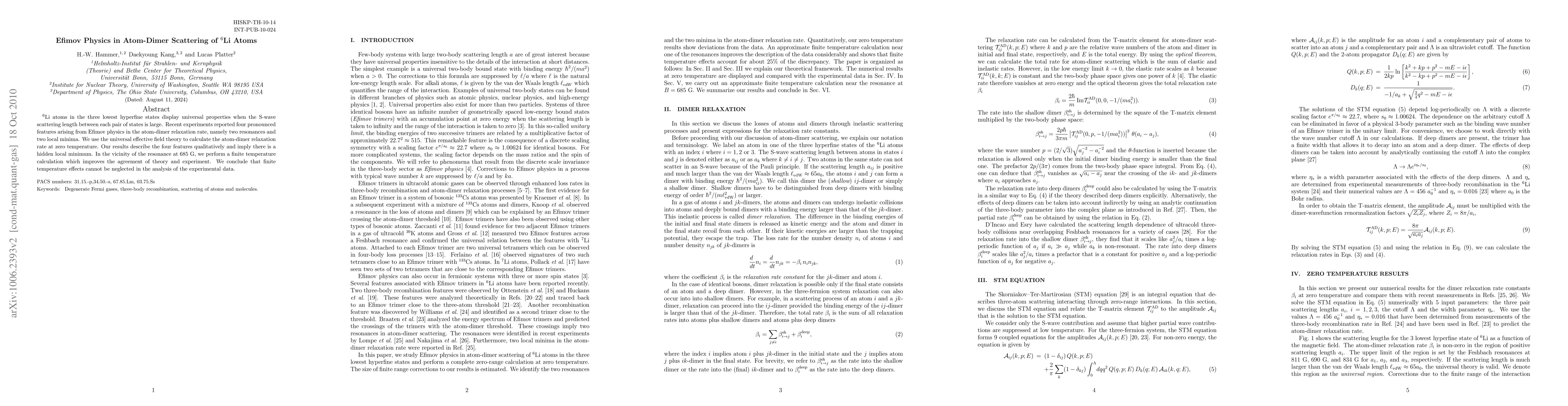 This paper investigates Efimov physics in lithium-6 atom-dimer scattering, identifying four features in the atom-dimer relaxation rate due to large scattering lengths. Using an effective field theory, the authors qualitatively describe these features and highlight the importance of finite temperature effects, especially near the 685 G resonance.