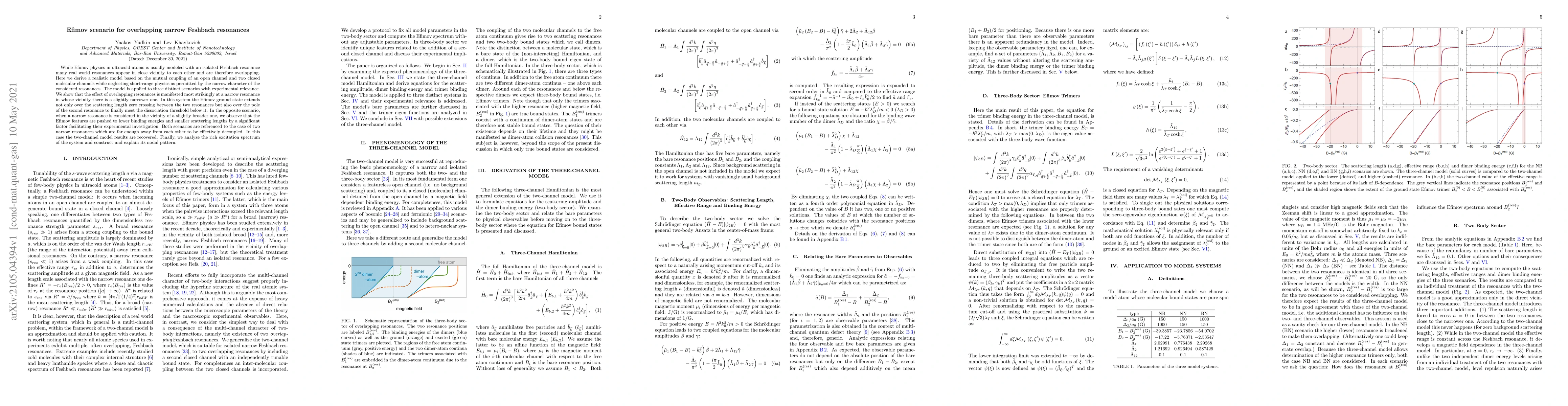 This paper models Efimov physics in ultracold atoms with overlapping narrow Feshbach resonances, showing significant effects when resonances are closely spaced. It reveals how Efimov states extend beyond resonance interactions, affecting experimental investigation, and analyzes the system's excitation spectrum and nodal pattern.