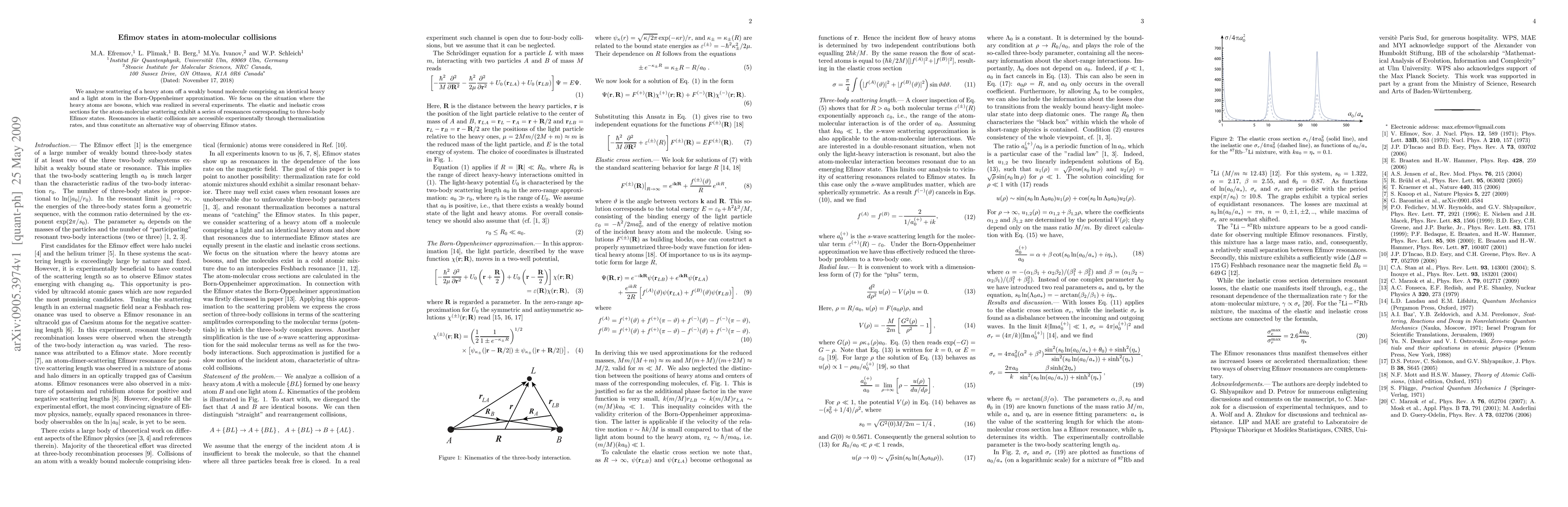 Summary: This paper investigates the scattering of bosonic heavy atoms off weakly bound molecules, revealing a series of resonances in atom-molecular collisions corresponding to Efimov states. These resonances, detectable via thermalization rates, provide an experimental method for observing Efimov states.