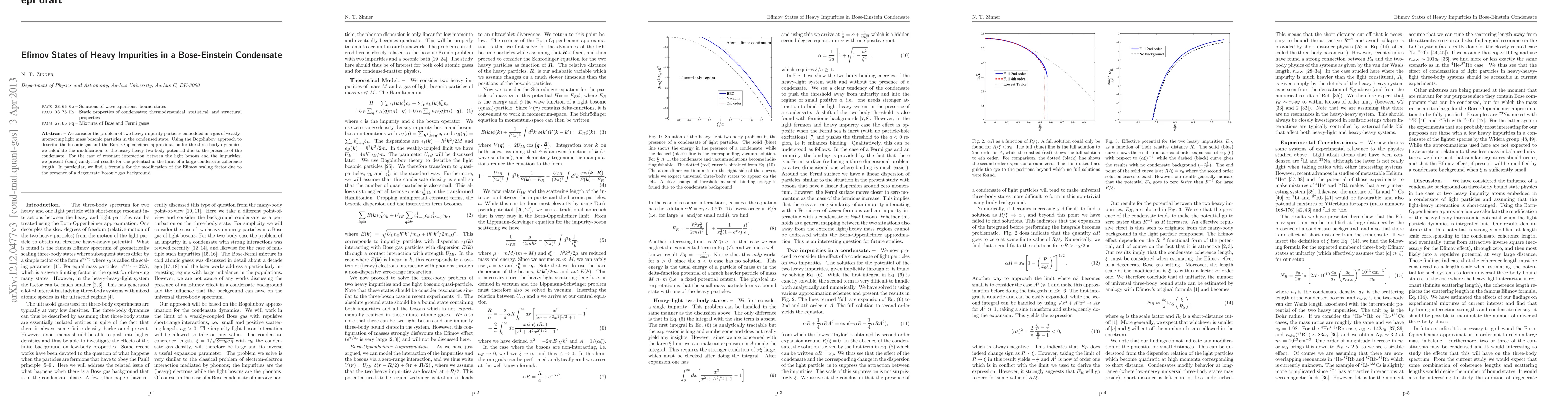 This paper investigates the effect of a Bose-Einstein condensate on the interaction between two heavy impurity particles, using Bogoliubov and Born-Oppenheimer approximations. It finds a modified Efimov scaling factor influenced by the condensate, particularly when light bosons interact resonantly with the impurities.