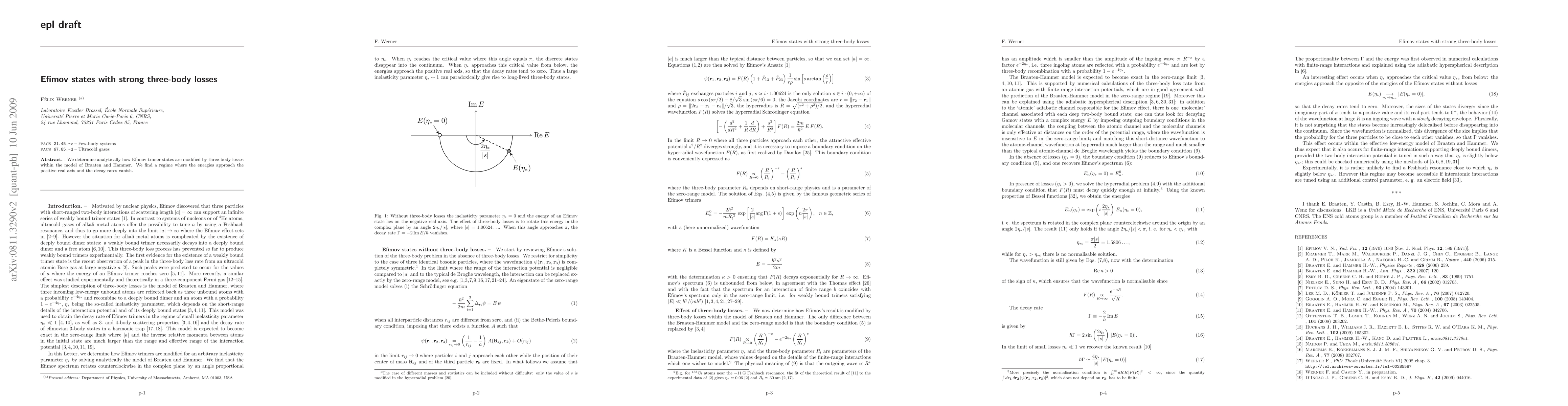 We determine analytically how Efimov trimer states are modified by three-body losses within the model of Braaten and Hammer. We find a regime where the energies approach the positive real axis and the decay rates vanish.
