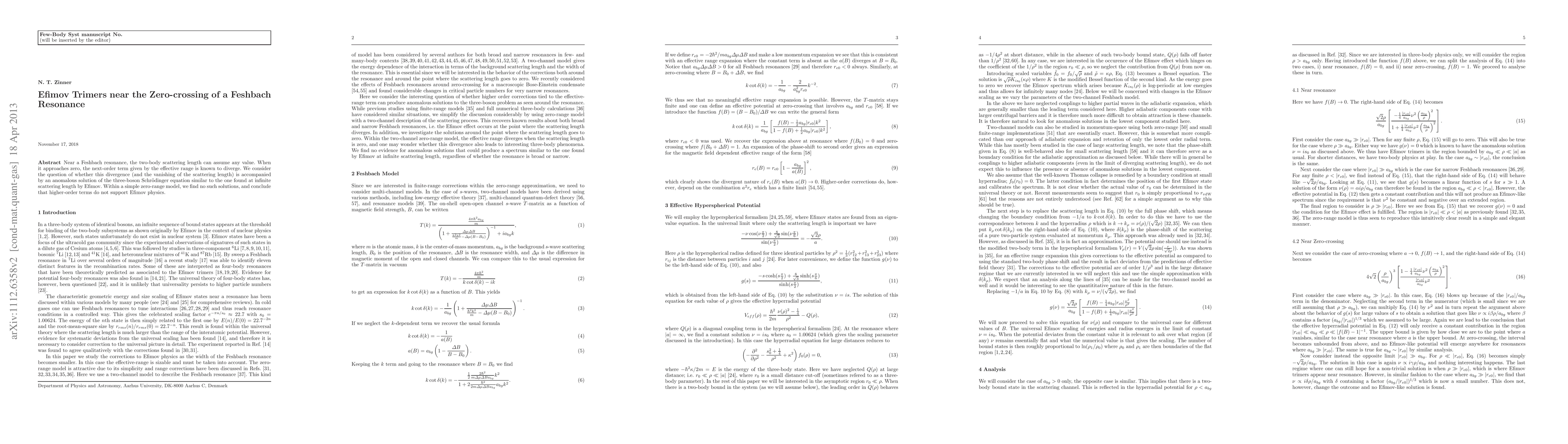 Summary: The study investigates whether a divergence in the effective range near a zero-crossing Feshbach resonance leads to Efimov physics in three-boson systems. Using a zero-range model, the researchers find no anomalous solutions akin to Efimov trimers, concluding that higher-order terms do not support such phenomena.