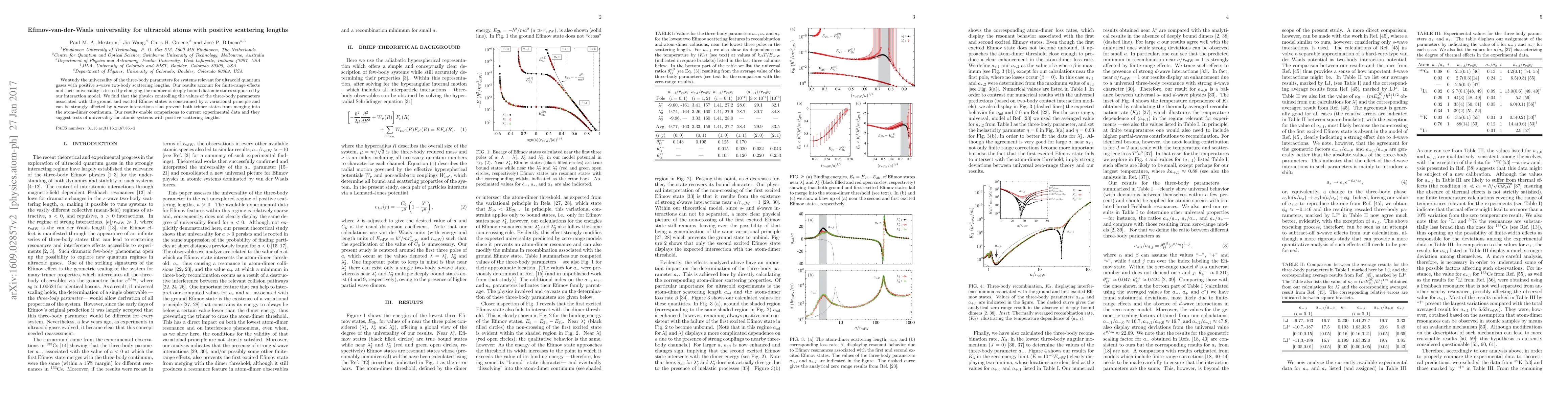 We study the universality of the three-body parameters for systems relevant for ultracold quantum gases with positive $s$-wave two-body scattering lengths. Our results account for finite-range effects and their universality is tested by changing the number of deeply bound diatomic states supported by our interaction model. We find that the physics controlling the values of the three-body parameters associated with the ground and excited Efimov states is constrained by a variational principle and can be strongly affected by $d$-wave interactions that prevent both trimer states from merging into the atom-dimer continuum. Our results enable comparisons to current experimental data and they suggest tests of universality for atomic systems with{positive scattering lengths.