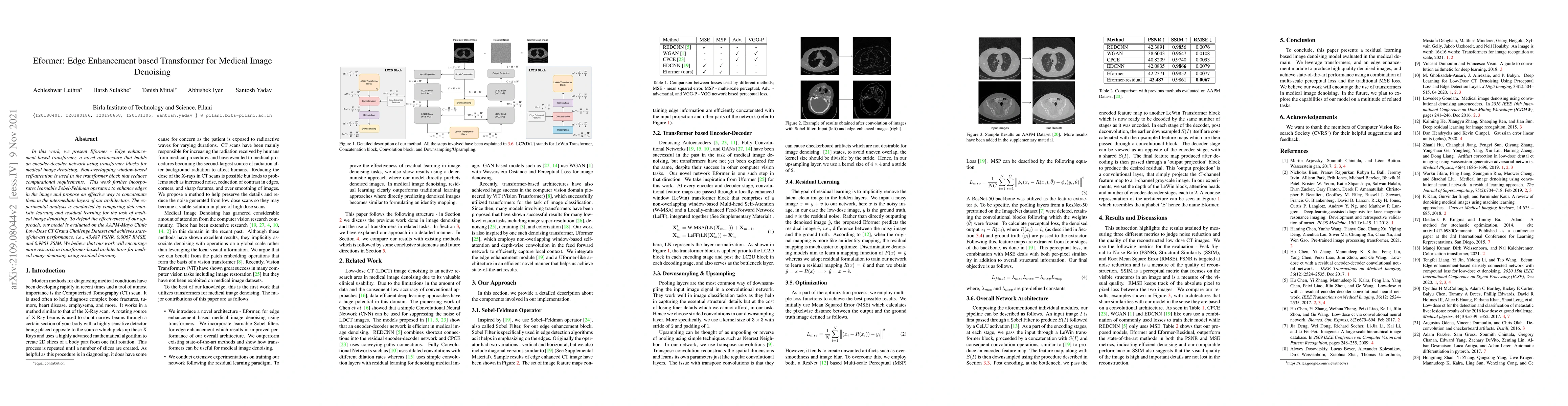 Eformer is a novel transformer-based architecture for medical image denoising that uses non-overlapping window-based self-attention and learnable edge enhancement operators. It achieves state-of-the-art performance on the AAPM-Mayo Clinic Low-Dose CT dataset, demonstrating the potential of transformer models in medical image processing.