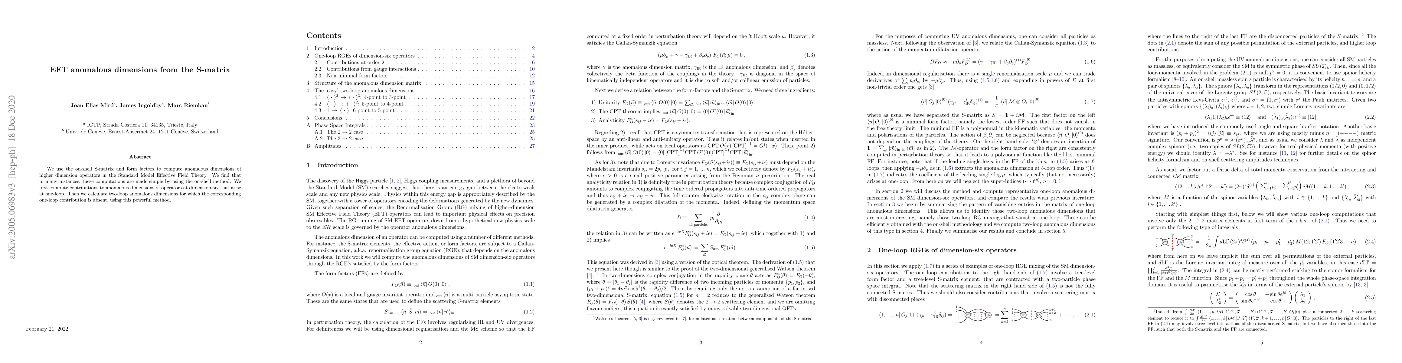 Researchers used the on-shell S-matrix method to simplify calculations of anomalous dimensions in the Standard Model Effective Field Theory, finding that this approach significantly eased computations for one-loop and two-loop operators.