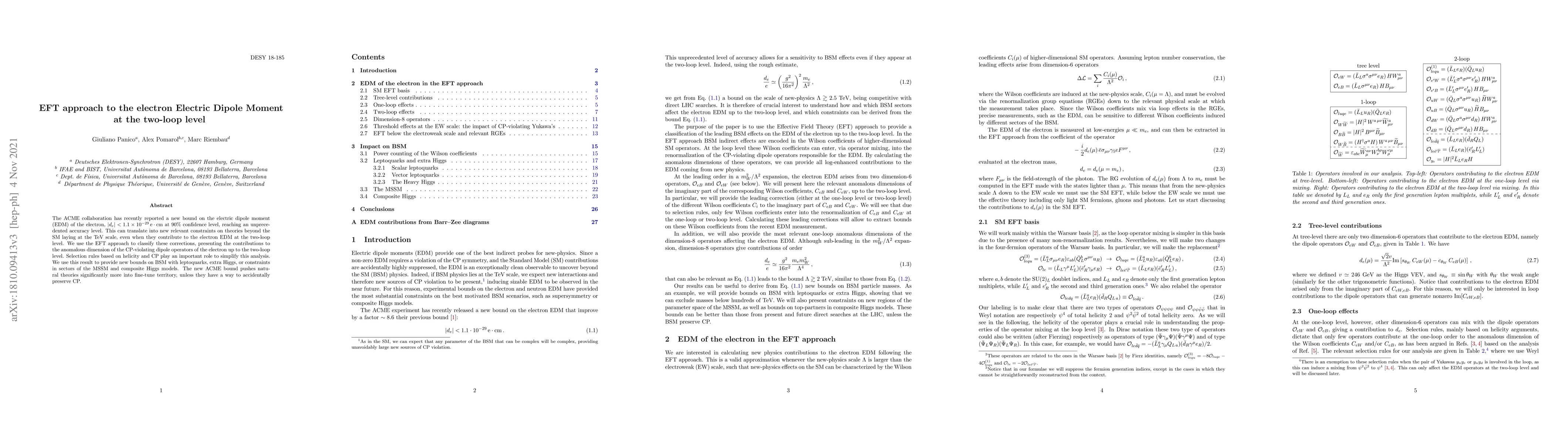 The ACME collaboration has recently reported a new bound on the electric dipole moment (EDM) of the electron, $|d_e|< 1.1 \times 10^{-29}\, {\rm e\cdot cm}$ at 90$\%$ confidence level, reaching an unprecedented accuracy level. This can translate into new relevant constraints on theories beyond the SM laying at the TeV scale, even when they contribute to the electron EDM at the two-loop level. We use the EFT approach to classify these corrections, presenting the contributions to the anomalous dimension of the CP-violating dipole operators of the electron up to the two-loop level. Selection rules based on helicity and CP play an important role to simplify this analysis. We use this result to provide new bounds on BSM with leptoquarks, extra Higgs, or constraints in sectors of the MSSM and composite Higgs models. The new ACME bound pushes natural theories significantly more into fine-tune territory, unless they have a way to accidentally preserve CP.