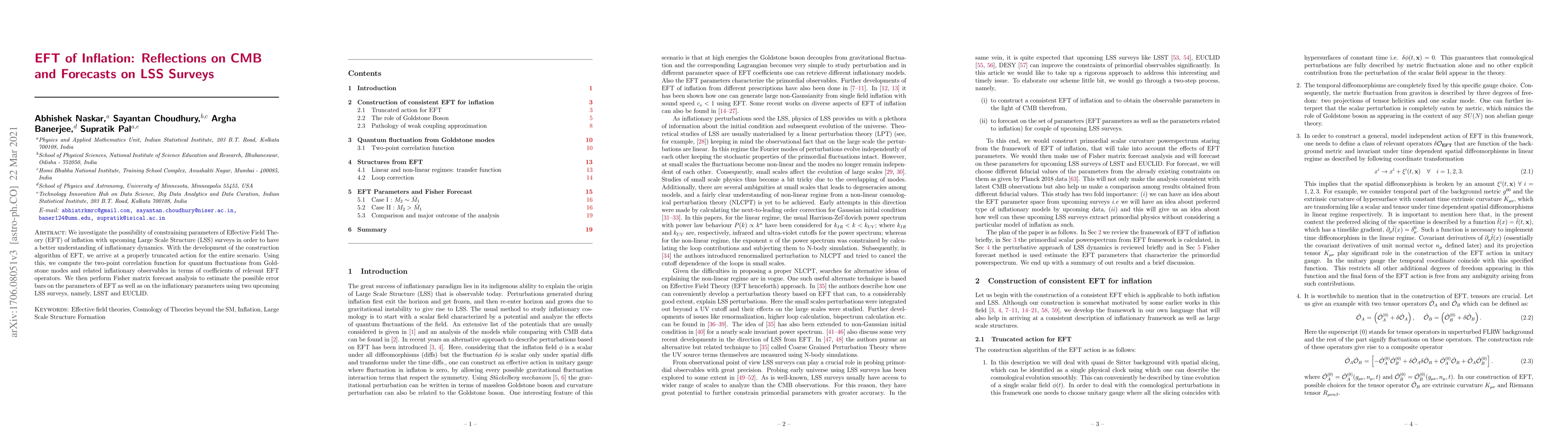 We investigate the possibility of constraining parameters of Effective Field Theory (EFT) of inflation with upcoming Large Scale Structure (LSS) surveys in order to have a better understanding of inflationary dynamics. With the development of the construction algorithm of EFT, we arrive at a properly truncated action for the entire scenario. Using this, we compute the two-point correlation function for quantum fluctuations from Goldstone modes and related inflationary observables in terms of coefficients of relevant EFT operators. We then perform Fisher matrix forecast analysis to estimate the possible error bars on the parameters of EFT as well as on the inflationary parameters using two upcoming LSS surveys, namely, LSST and EUCLID.
