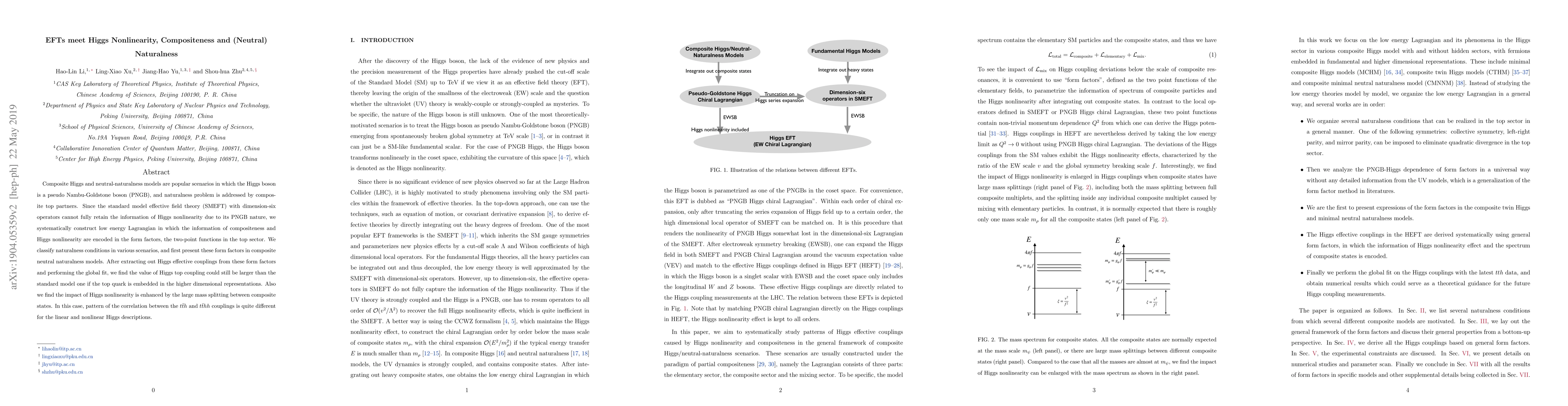 Composite Higgs and neutral-naturalness models are popular scenarios in which the Higgs boson is a pseudo Nambu-Goldstone boson, and naturalness problem is addressed by composite top partners. Since the standard model effective field theory (SMEFT) with dimension-six operators cannot fully retain the information of Higgs nonlinearity due to its PNGB nature, we systematically construct low energy Lagrangian in which the information of compositeness and Higgs nonlinearity are encoded in the form factors, the two-point functions in the top sector. We classify naturalness conditions in various scenarios, and first present these form factors in composite neutral naturalness models. After extracting out Higgs effective couplings from these form factors and performing the global fit, we find the value of Higgs top coupling could still be larger than the standard model one if the top quark is embedded in the higher dimensional representations. Also we find the impact of Higgs nonlinearity is enhanced by the large mass splitting between composite states. In this case, pattern of the correlation between the $t\bar{t}h$ and $t\bar{t}hh$ couplings is quite different for the linear and nonlinear Higgs descriptions.