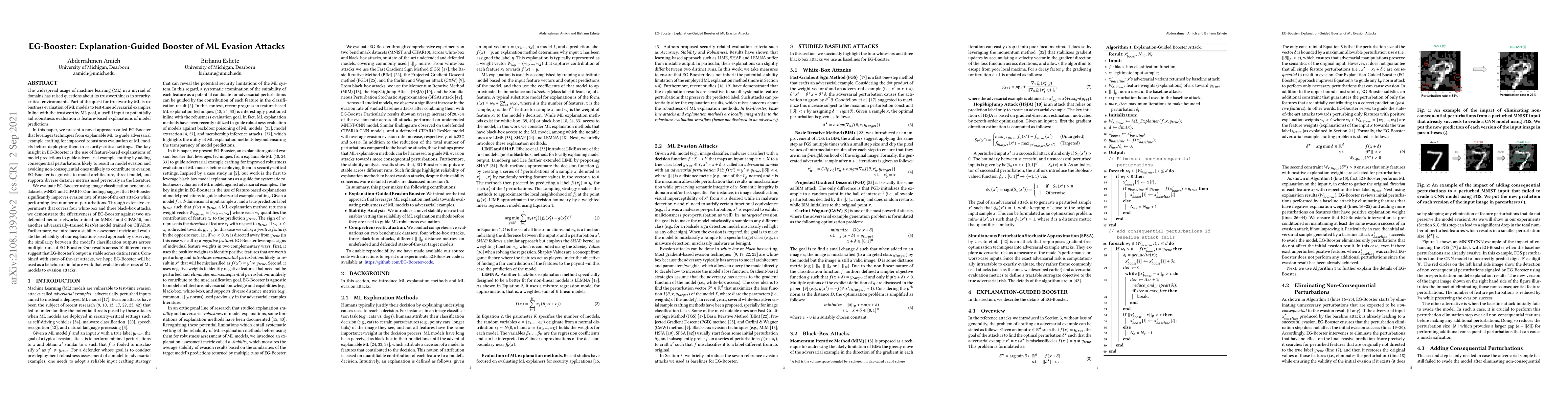 EG-Booster leverages explainable ML techniques to enhance adversarial attacks by guiding the crafting of adversarial examples using feature-based explanations, thereby improving the robustness evaluation of ML models. The method significantly boosts evasion rates with fewer perturbations across various attack types and datasets.