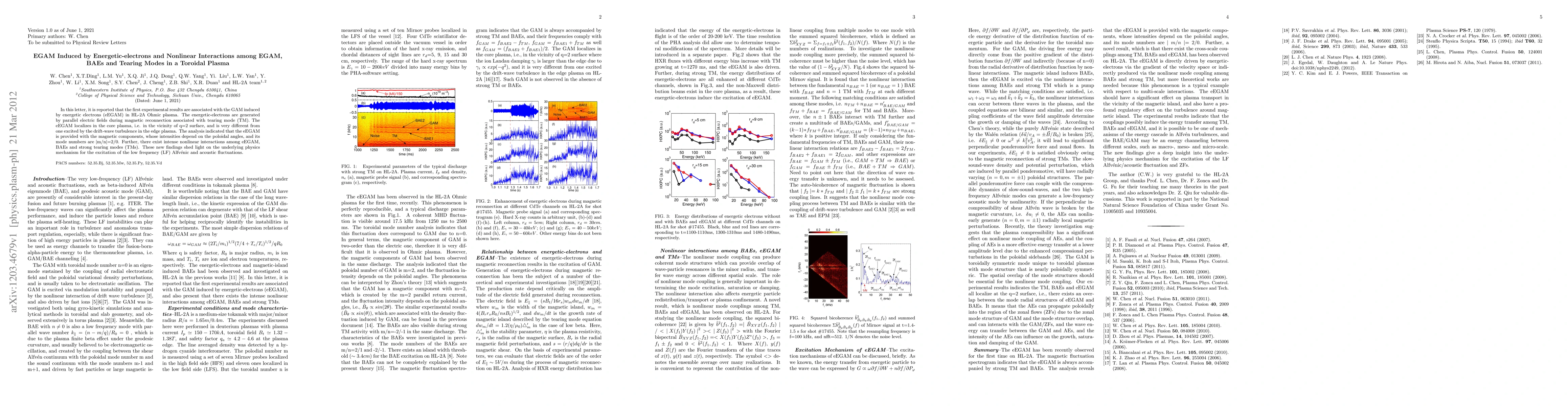 Researchers found that energetic electrons generate a new type of plasma instability called eEGAM, which differs from traditional GAMs and interacts with tearing modes and BAEs in a toroidal plasma.