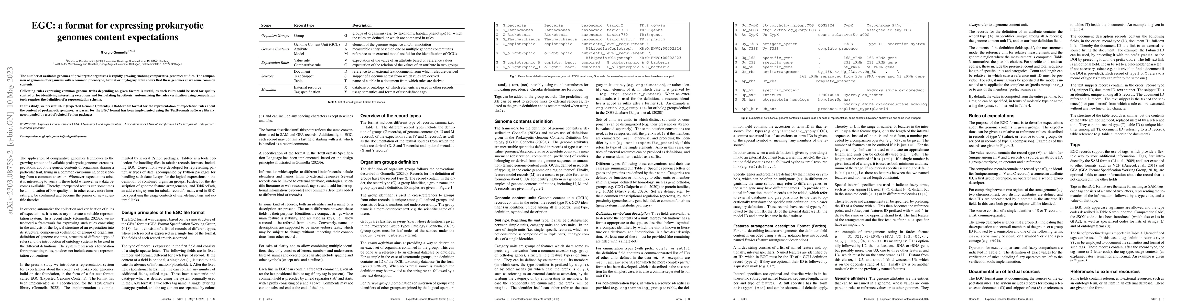 The paper introduces EGC, a format for expressing expectations about prokaryotic genome contents, facilitating comparative genomics and hypothesis formulation. It includes a parser and related Python packages for automating rules verification.