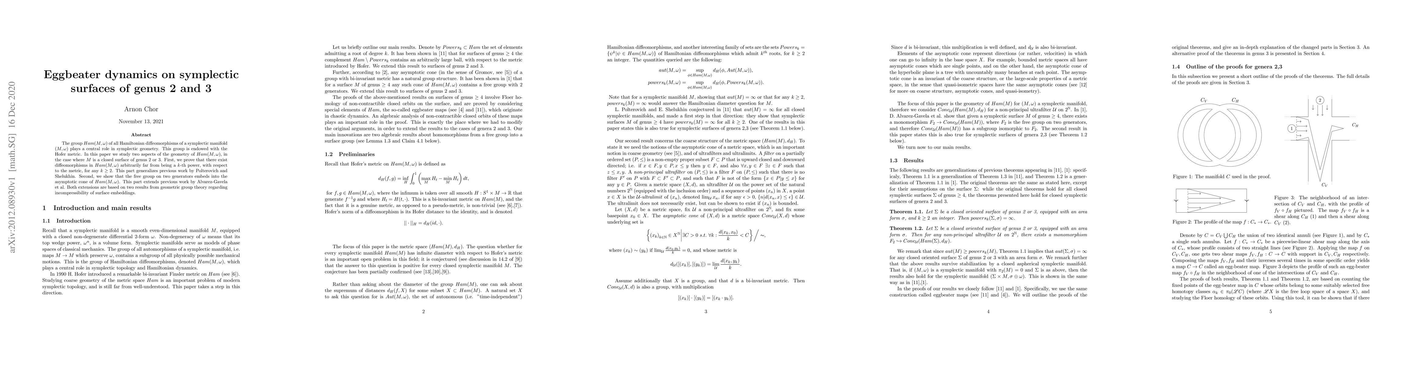 The group $Ham(M,\omega)$ of all Hamiltonian diffeomorphisms of a symplectic manifold $(M,\omega)$ plays a central role in symplectic geometry. This group is endowed with the Hofer metric. In this paper we study two aspects of the geometry of $Ham(M,\omega)$, in the case where $M$ is a closed surface of genus 2 or 3. First, we prove that there exist diffeomorphisms in $Ham(M,\omega)$ arbitrarily far from being a $k$-th power, with respect to the metric, for any $k \geq 2$. This part generalizes previous work by Polterovich and Shelukhin. Second, we show that the free group on two generators embeds into the asymptotic cone of $Ham(M,\omega)$. This part extends previous work by Alvarez-Gavela et al. Both extensions are based on two results from geometric group theory regarding incompressibility of surface embeddings.