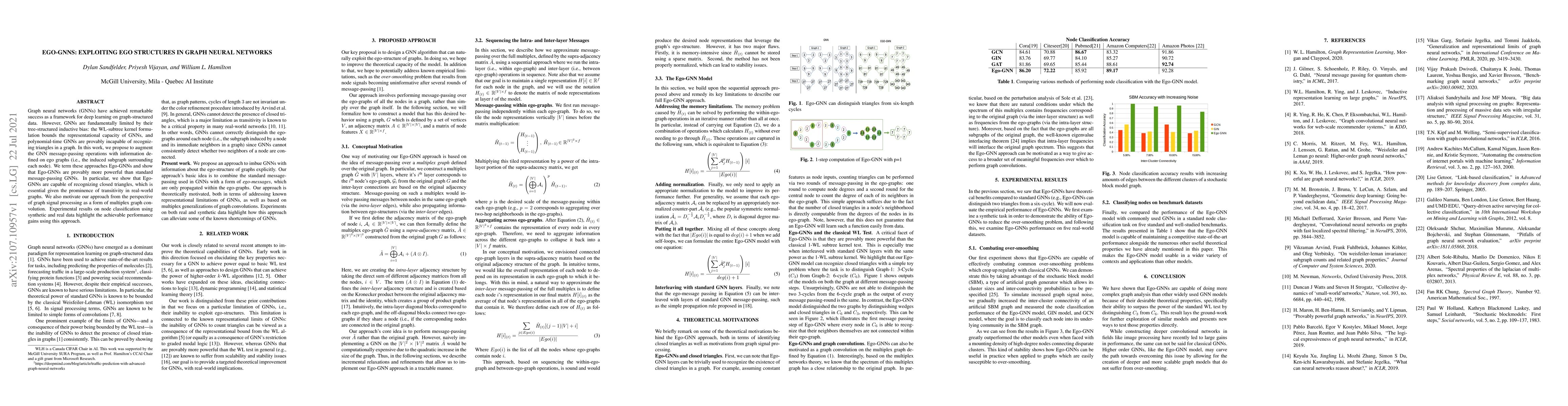 This paper proposes Ego-GNNs, which augment traditional GNNs by incorporating information from ego graphs to overcome the limitations of GNNs' tree-structured inductive bias. Ego-GNNs are shown to be more powerful, capable of recognizing closed triangles, and demonstrate performance gains in node classification tasks.