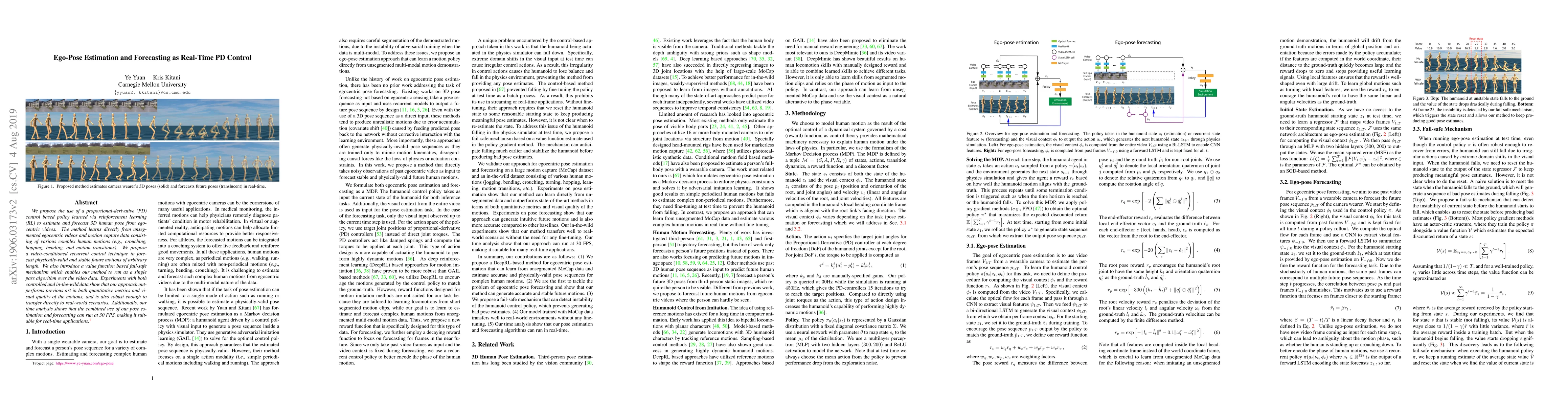 This research paper proposes a new method for real-time ego-pose estimation and forecasting using proportional-derivative control learned via reinforcement learning, achieving high performance in both controlled and real-world scenarios.