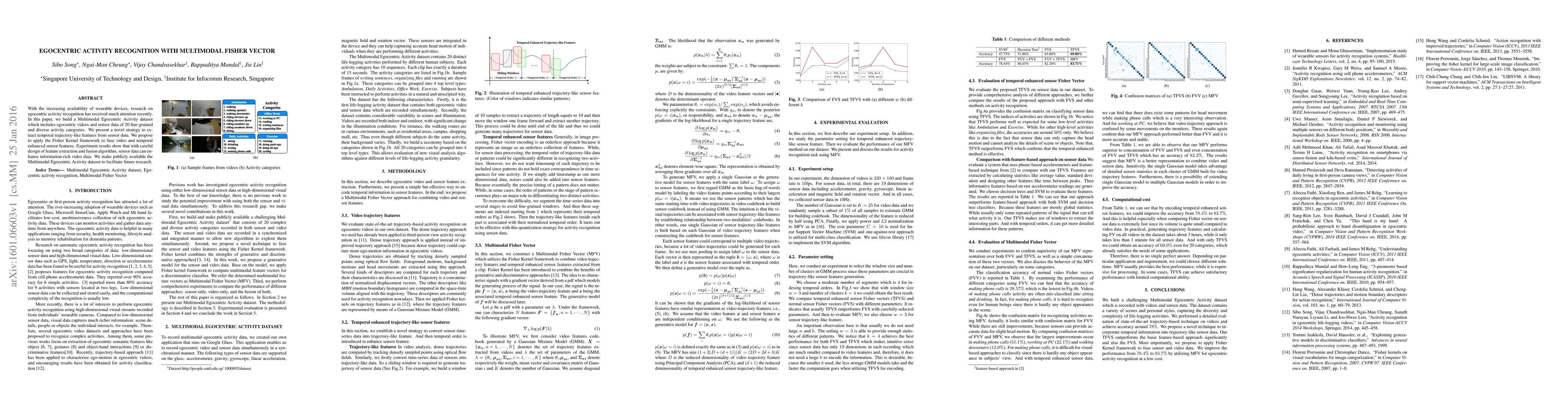 The paper describes a Multimodal Egocentric Activity dataset comprising egocentric videos and sensor data for 20 fine-grained activity categories. It introduces a novel strategy to extract temporal trajectory-like features from sensor data and proposes a Multimodal Fisher Vector approach to fuse video and sensor features using the Fisher Kernel framework.