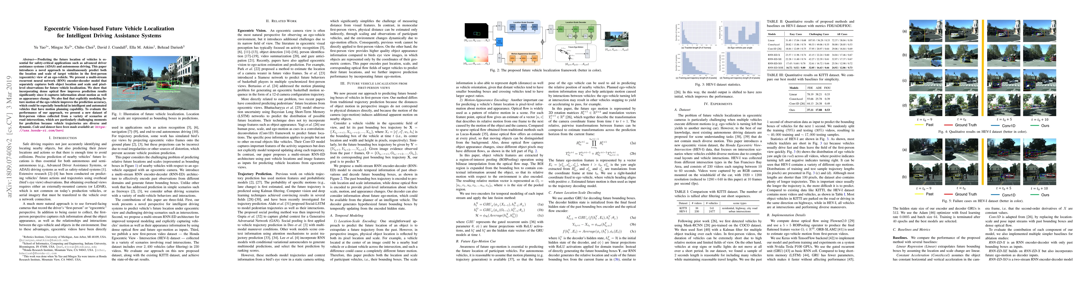 This paper proposes a novel RNN encoder-decoder model for predicting future locations and scales of target vehicles from an egocentric viewpoint, enhanced by dense optical flow and ego-vehicle motion modeling. A new dataset of first-person videos at road intersections is introduced to evaluate the model's performance.
