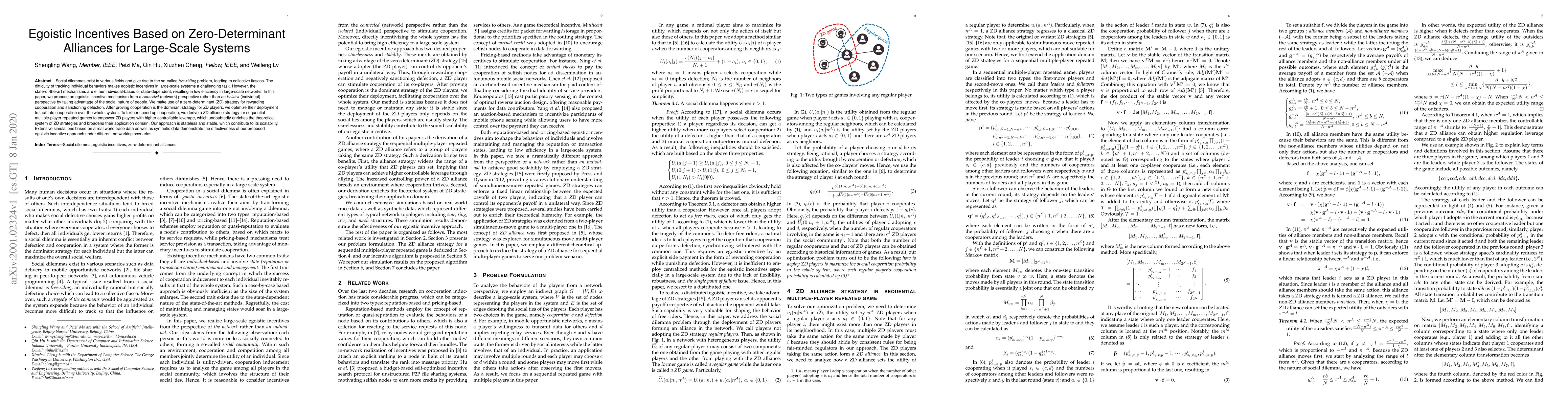 Researchers propose a new egoistic incentive mechanism to encourage cooperation in large-scale systems, using zero-determinant strategies that optimize player deployment for maximum impact.