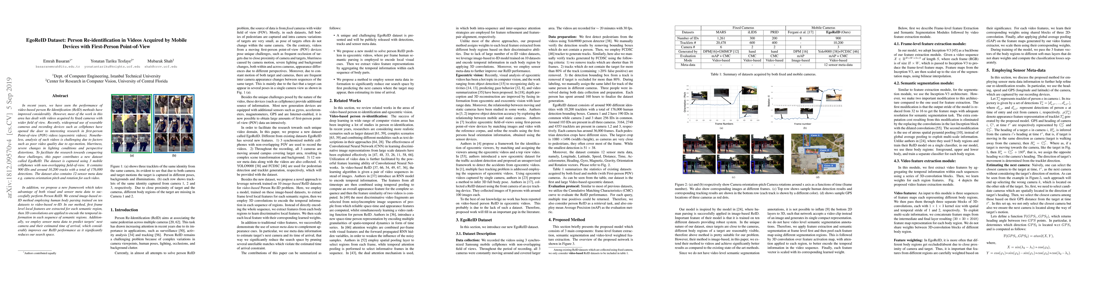 This paper introduces the EgoReID dataset, a collection of first-person point-of-view videos captured by mobile devices, aimed at advancing person re-identification in egocentric videos. The dataset includes 900 IDs and extensive metadata, and the authors propose a framework leveraging both visual and sensor data to improve re-identification performance, significantly reducing the search space.