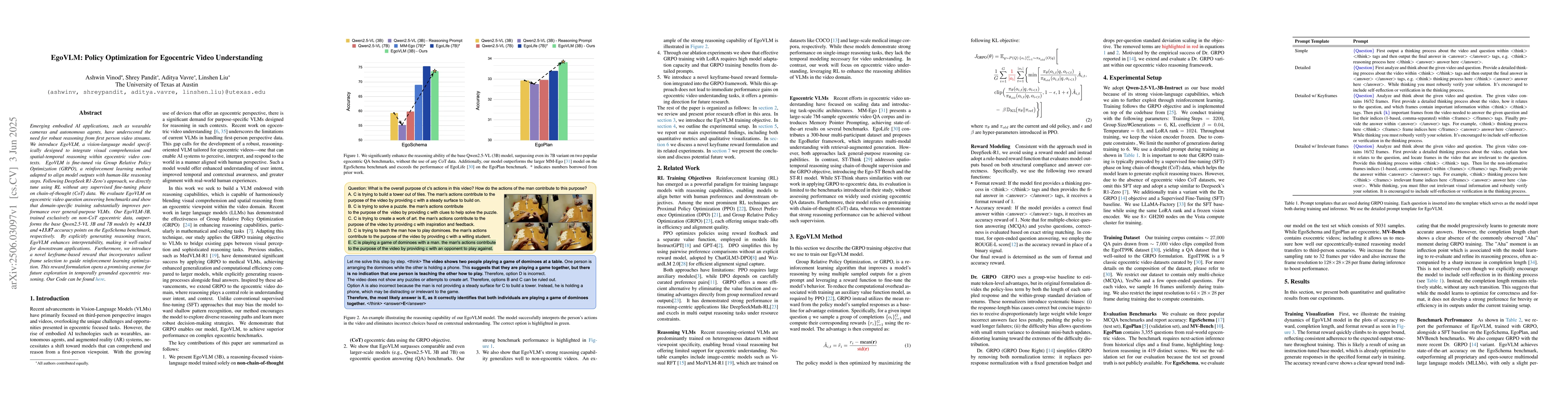 A new AI model called EgoVLM improves performance on egocentric video question answering by using reinforcement learning to generate human-like reasoning steps. It outperforms existing models with domain-specific training.