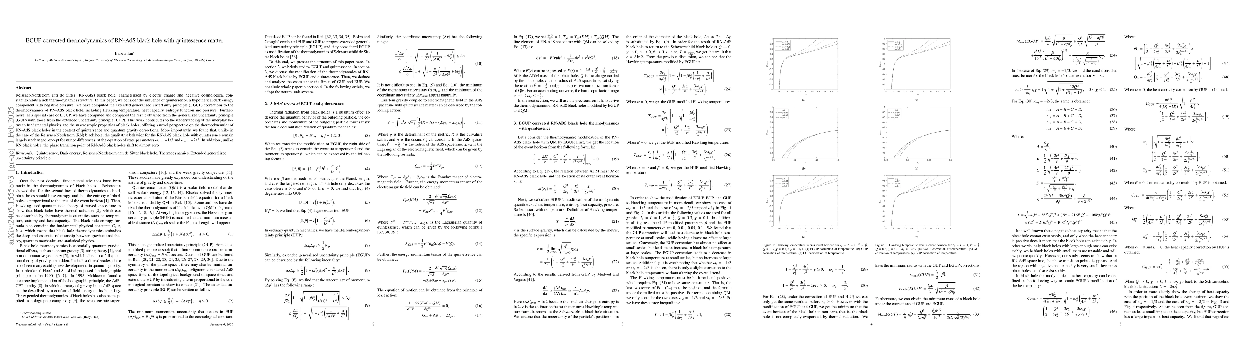 This paper investigates the thermodynamics of Reissner-Nordstrom anti de Sitter black holes under the influence of quintessence and examines extended generalized uncertainty principle (EGUP) corrections. The study reveals that EGUP corrections lead to minor differences in the thermodynamic behavior, especially at specific quintessence parameters, and eliminate phase transition points, allowing small mass black holes to exist stably.