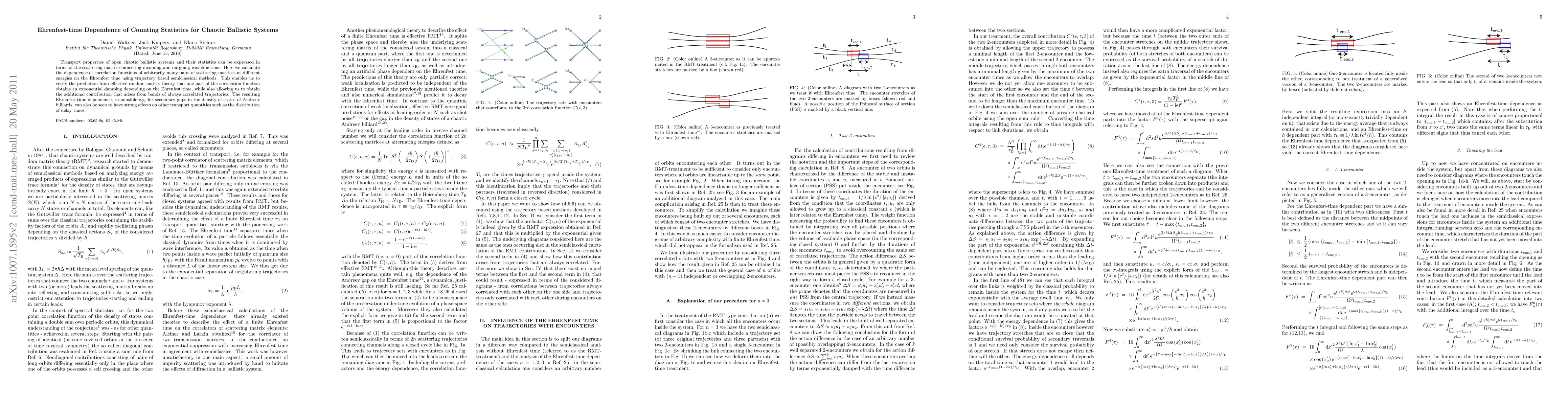 This paper investigates the Ehrenfest-time dependence of counting statistics in chaotic ballistic systems using trajectory-based semiclassical methods. It verifies the prediction from effective random matrix theory that correlation functions exhibit exponential damping with Ehrenfest time, while also identifying additional contributions from correlated trajectory bands.