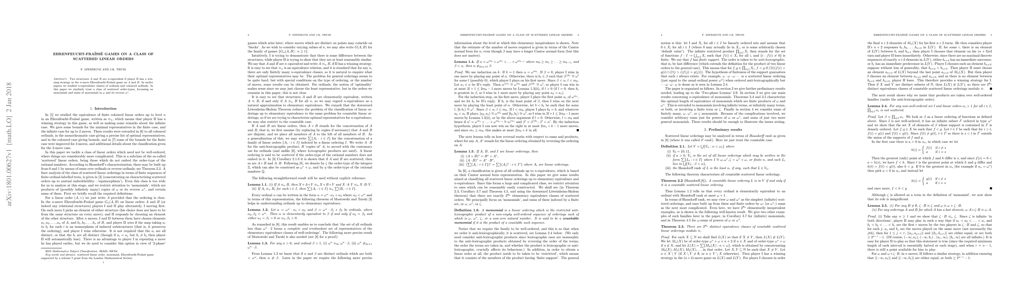 Two structures $A$ and $B$ are $n$-equivalent if player II has a winning strategy in the $n$-move Ehrenfeucht-Fra\"iss\'e game on $A$ and $B$. In earlier papers we studied $n$-equivalence classes of ordinals and coloured ordinals. In this paper we similarly treat a class of scattered order-types, focussing on monomials and sums of monomials in $\omega$ and its reverse $\omega^*$.