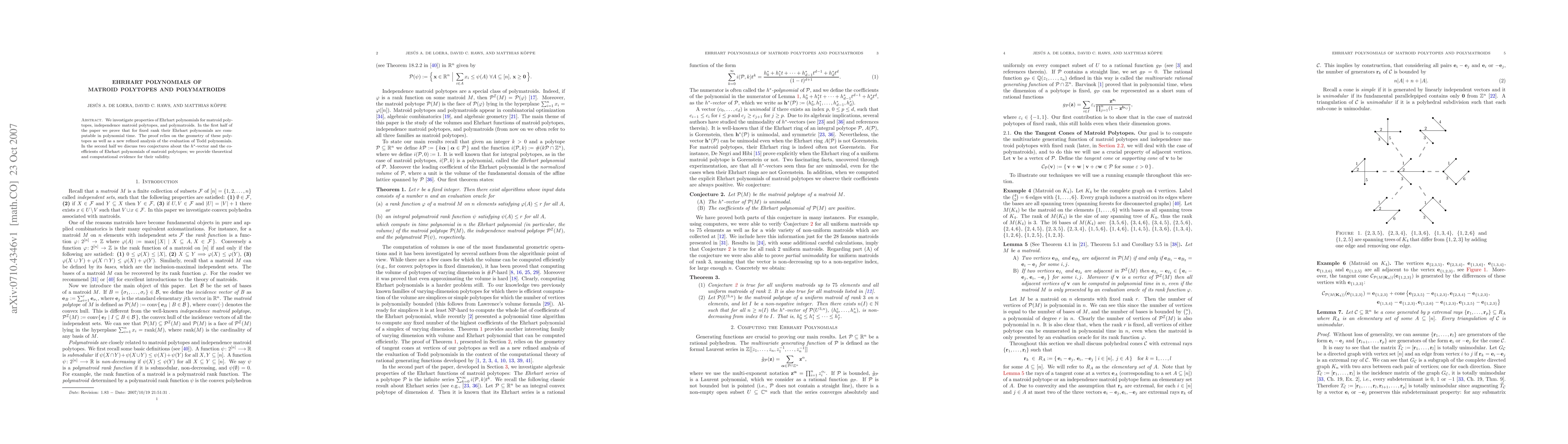 This paper explores the computational properties of Ehrhart polynomials for matroid polytopes and polymatroids, proving their polynomial-time computability for fixed rank through geometric analysis and refined Todd polynomial evaluations. It also presents conjectures regarding the h^*-vector and polynomial coefficients, supported by theoretical and computational evidence.